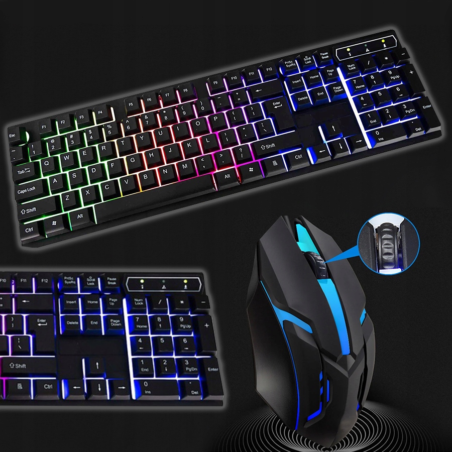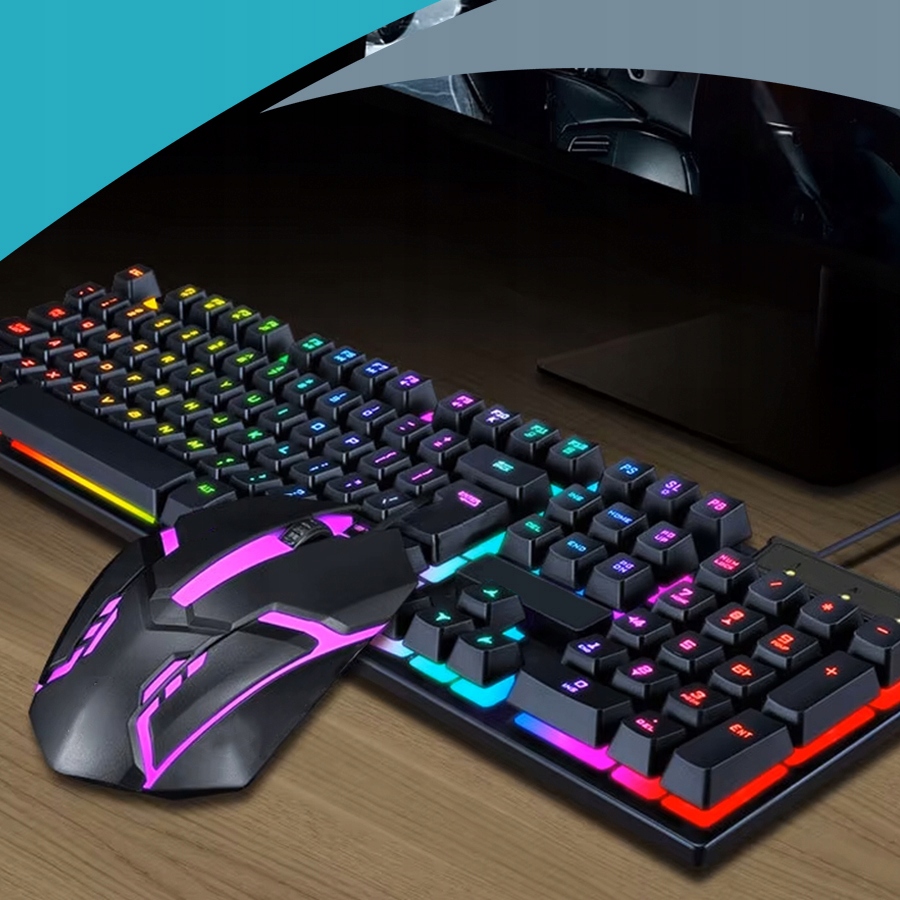 ВОДОСТІЙКА ІГРОВА КЛАВІАТУРА + МИША ЗІ СВІТОДІОДНИМ ПІДСВІЧУВАННЯМ USB