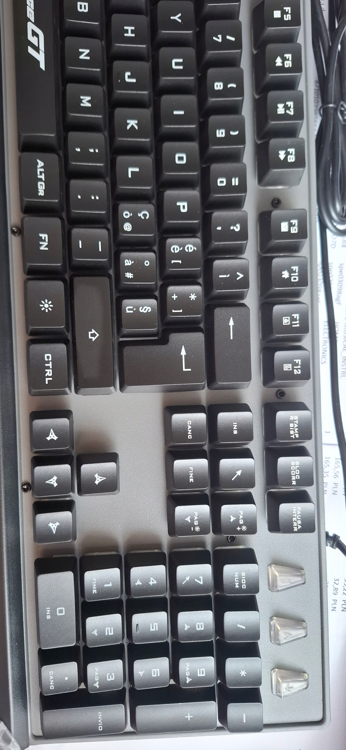 - Система: Іспанська (105 клавіш, числовий клавіатура)