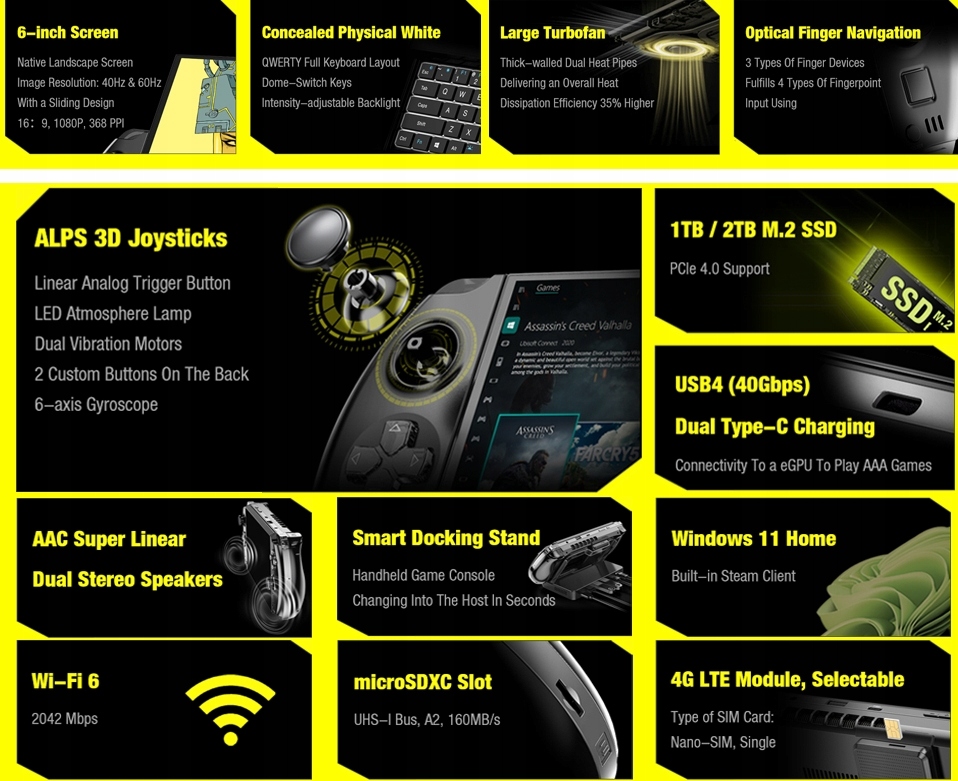 GPD Win 4 2024 [AMD Ryzen 7 8840U-32GB+2TB] 6-дюймовий міні-портативний Win 11 PC ігрова консоль Gameplayer 1920X1080 сенсорний екран ноутбук планшетний ПК чорний