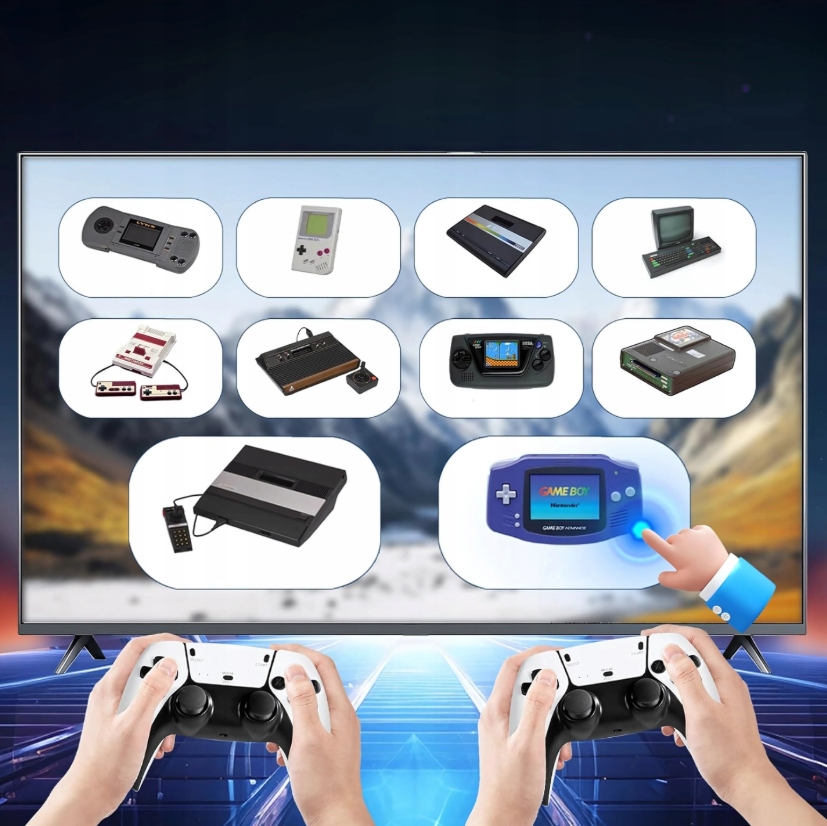 - 20 000 попередньо завантажених ігор – від таких консолей, як NES, SNES, Sega Mega Drive, Game Boy, Game Boy Advance, Atari, PSP Mini, PS1 та інших. пристрій.