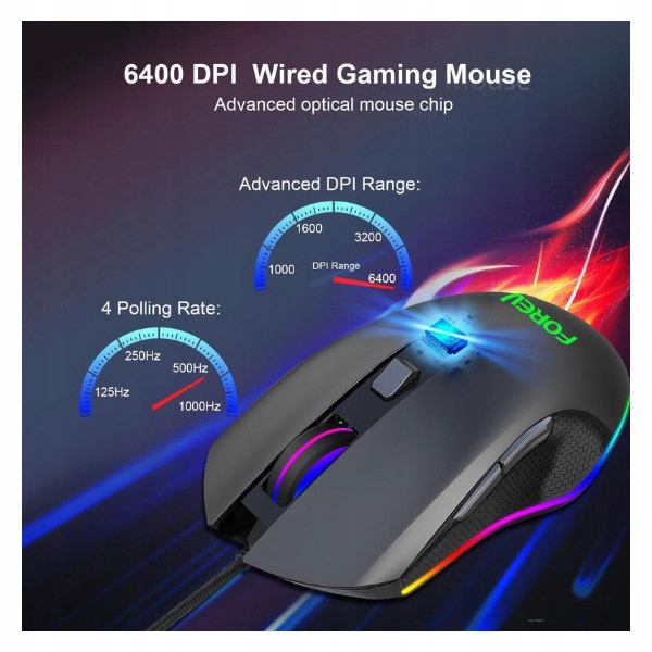 ДРОТОВА ІГРОВА МИША FOREV, ЧОРНА З ПІДСВІЧУВАННЯМ FV-Q7