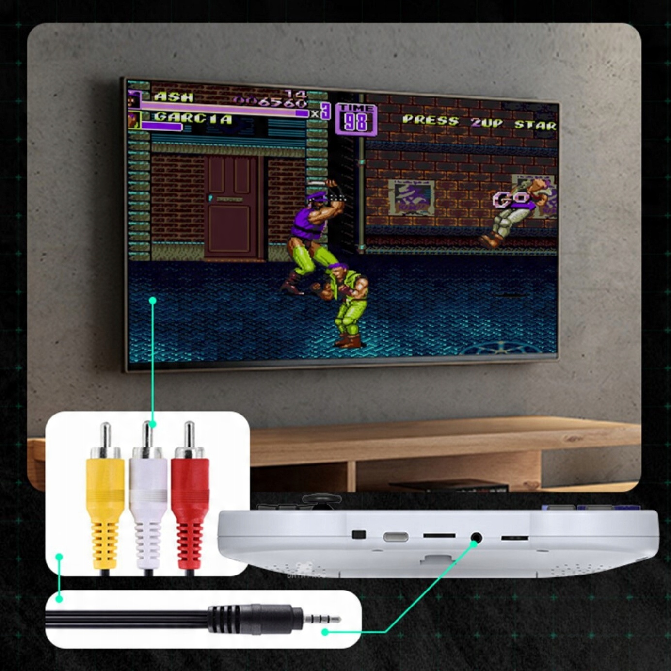 Ігрову консоль SF2000 можна підключити до телевізора за допомогою AV-кабелю.