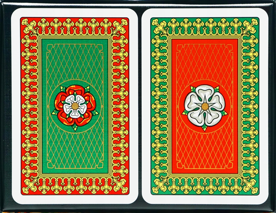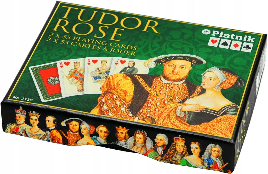 Гральні карти найвищої якості. На аверсах зображена англійська династія Тюдорів, а на прикрашених реверсах її герб - Тюдорівська троянда. Реверси не тільки благородні, але й симетричні та чітко відрізняються один від одного. Колоди складаються з 55 пластикових карток вагою 310 і розміром 62 х 91 мм.