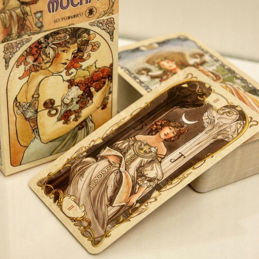 Надзвичайна данина поваги піонеру модерну Альфонсу Мухі, ця колода відображає свіжу красу зорі 20-го століття разом із віковою давниною мудрість і розуміння таро. Це спеціальне видання містить повнокольорові зображення та буклет, який розкриває всі секрети, приховані в картках.