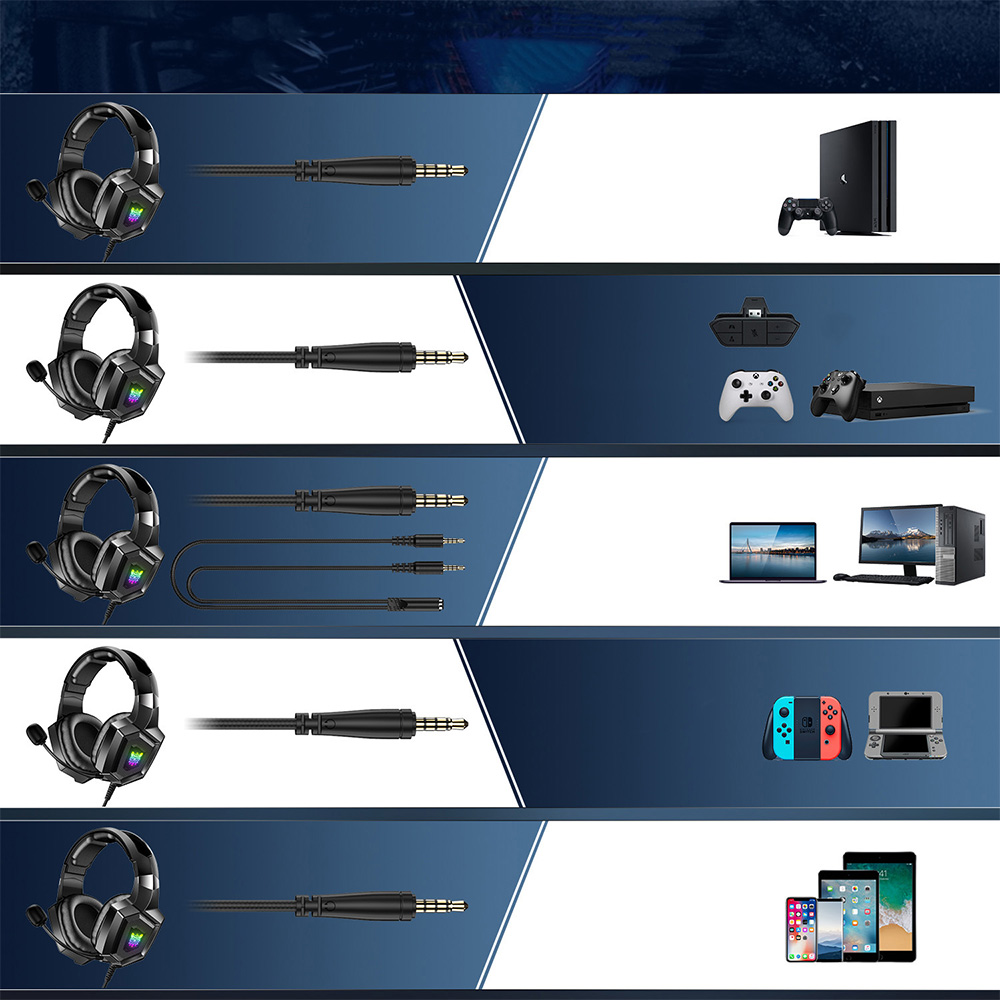 Завдяки роз'ємам, якими оснащено гарнітуру Onikuma, вона надзвичайно універсальна. Висока крос-платформна сумісність означає, що вам більше не потрібні різні навушники, адаптовані до обладнання, на якому ви зараз граєте. Продукти Onikuma розважать вас незалежно від того, граєте ви на ПК, завзятий консольний геймер або хочете використовувати їх на мобільних платформах. Якщо ваше обладнання підтримує передачу звуку через порт Mini Jack, навушники Onikuma — відмінний вибір для вас.
