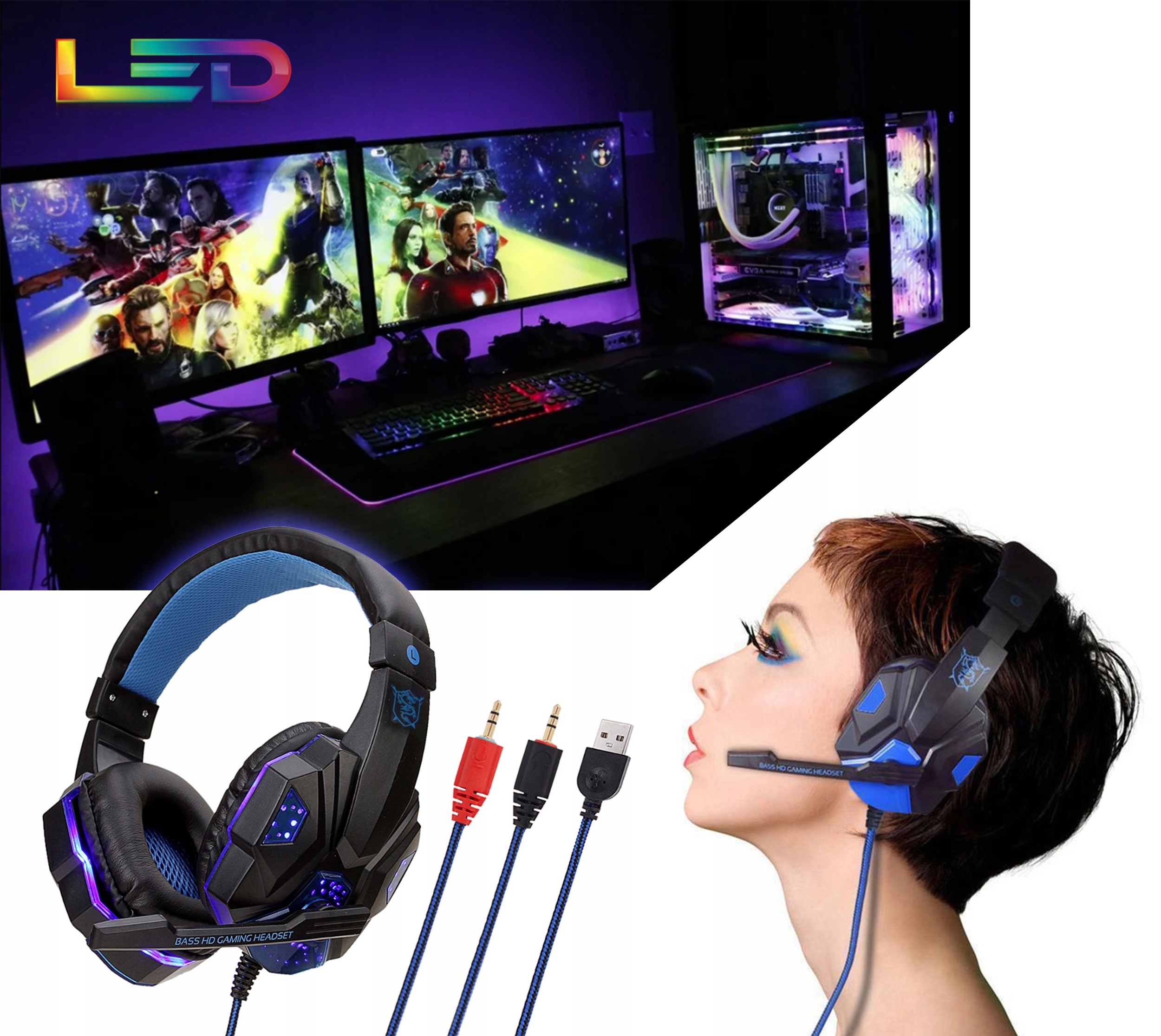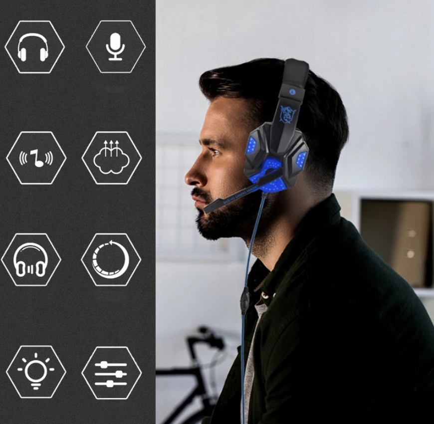 ІГРОВІ НАВУШНИКИ З МІКРОФОНОМ, LED ПІДСВІТЛЕННЯ
