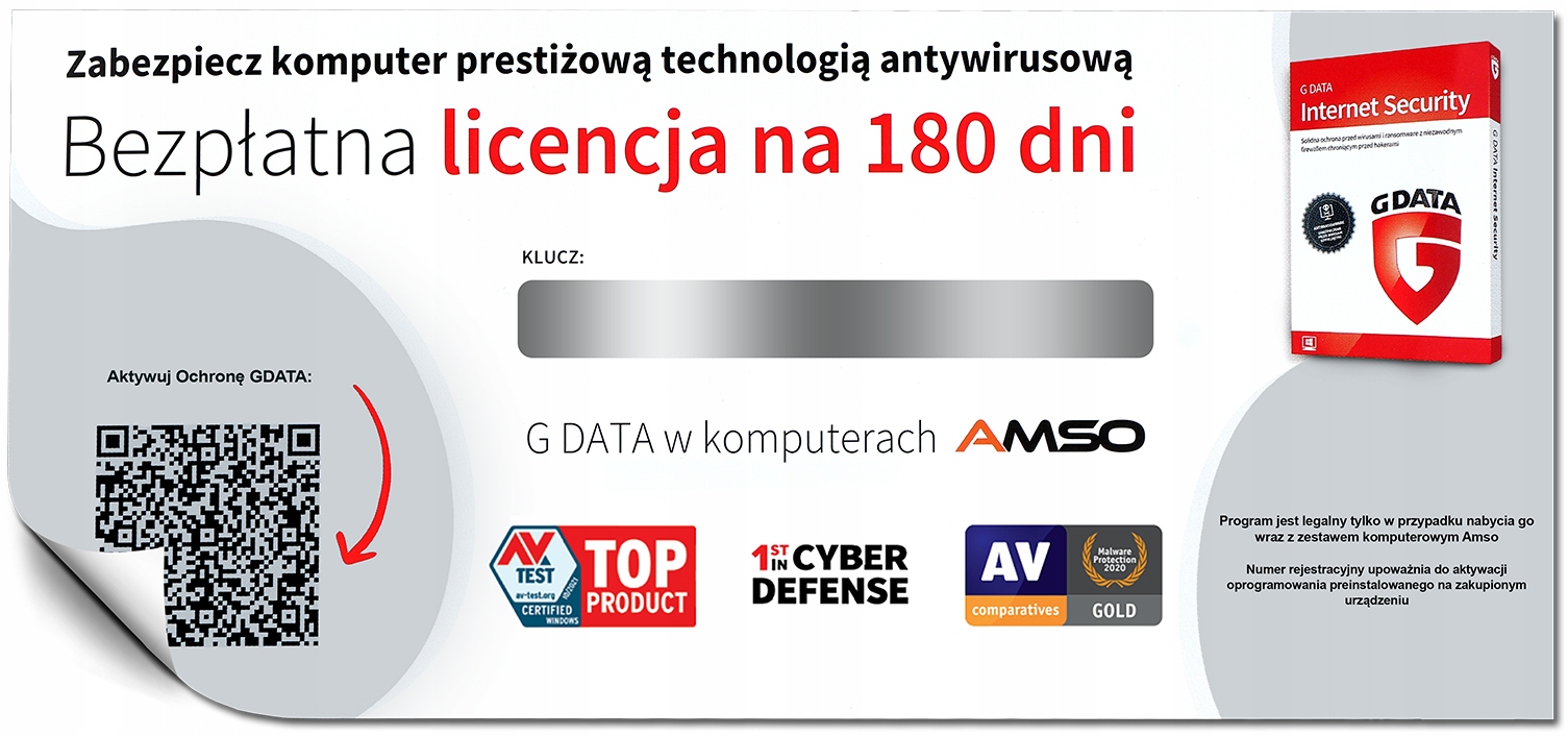 З вашим пристроєм ви отримаєте безкоштовну ліцензію GDATA Internet Security на 180 днів із можливістю продовження.