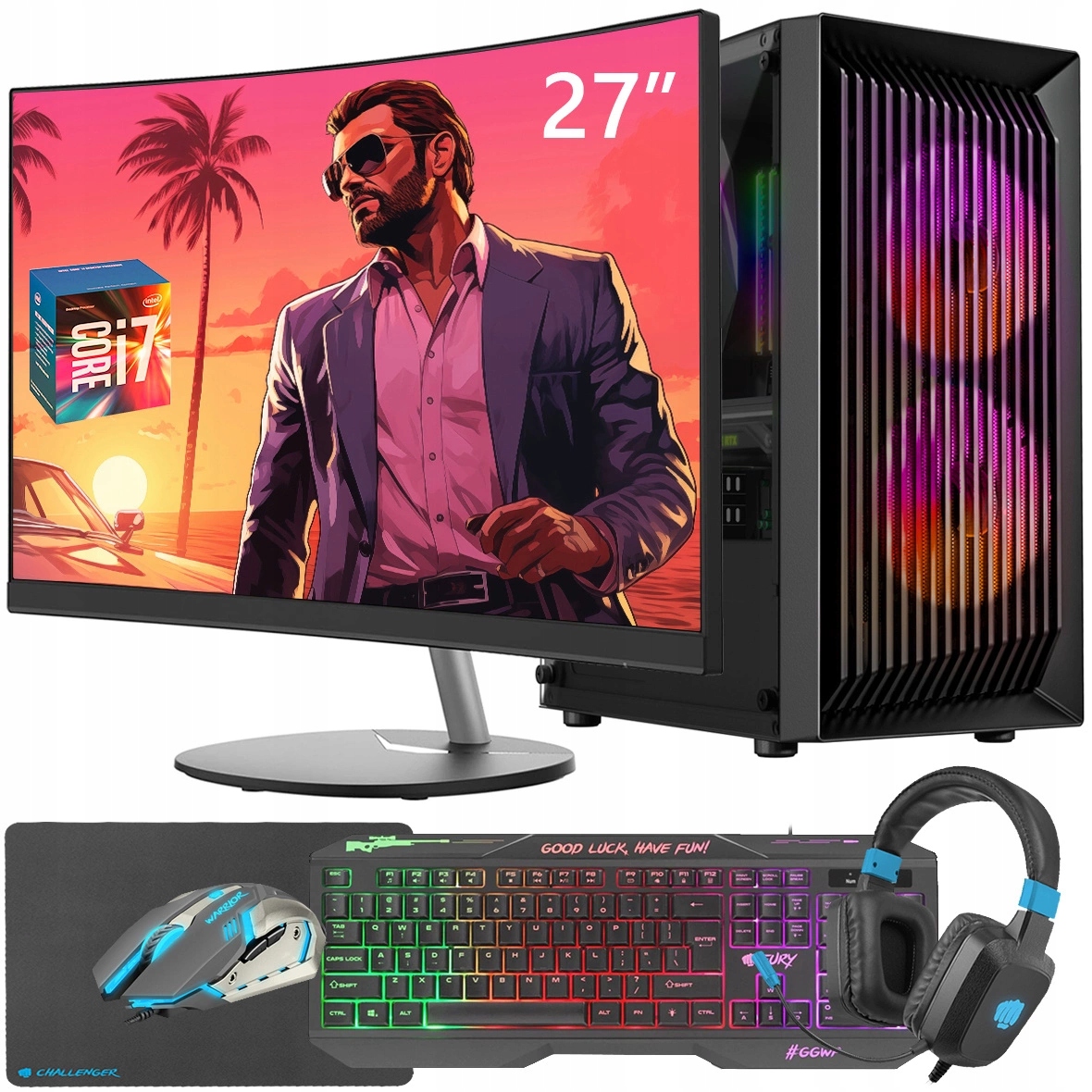 ІГРОВИЙ КОМП'ЮТЕР I7 RADEON RX 32 ГБ RAM SSD 1 ТБ RGB WINDOWS10 МОНІТОР 27
