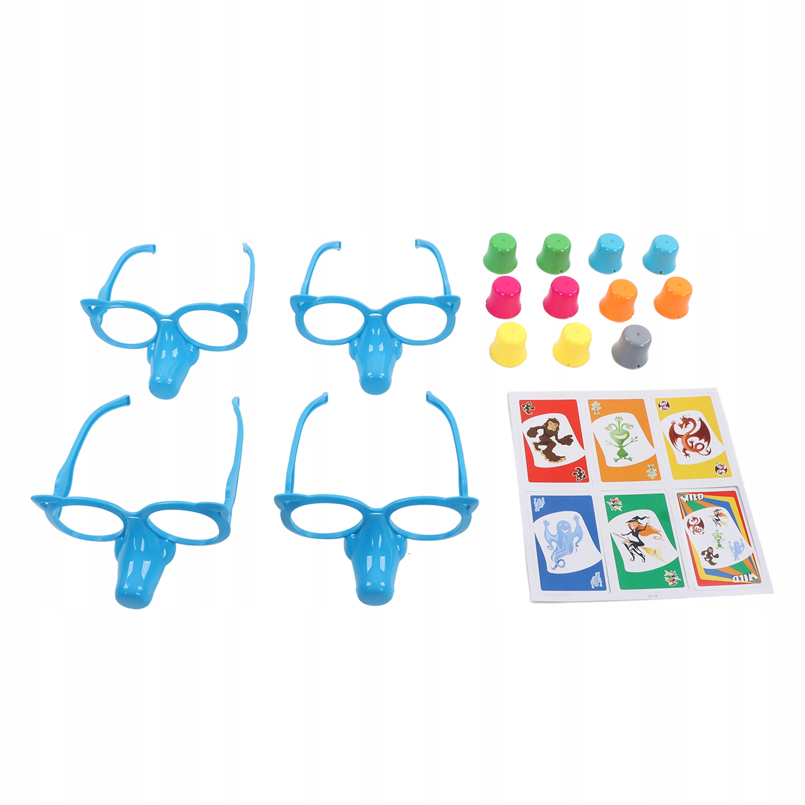 1. Пакет включає в себе: дошку для гри, 4 окуляри для складання, 24 картки та 11 накладок для носа, які подарують вам і вашій родині нескінченне задоволення.