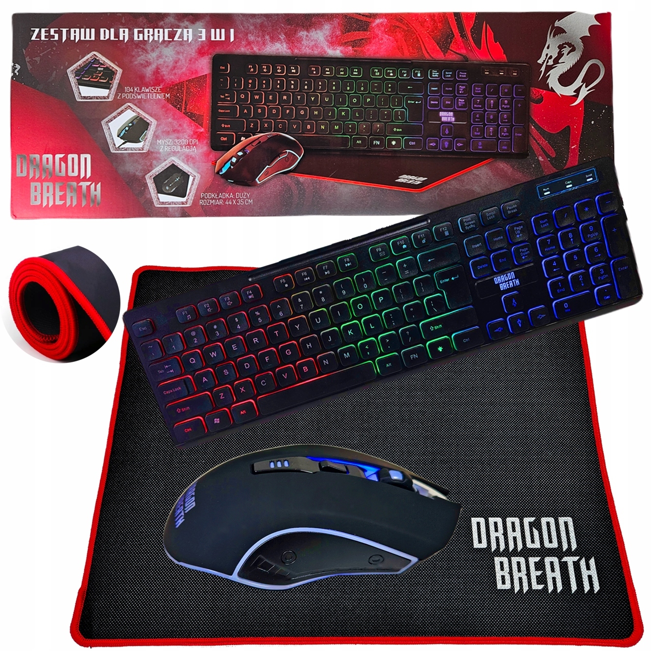ІГРОВИЙ НАБІР DRAGON BREATH 3IN1 RGB КЛАВІАТУРА КОВРИК ДЛЯ МИШІ ДЛЯ ГЕЙМЕРОВ
