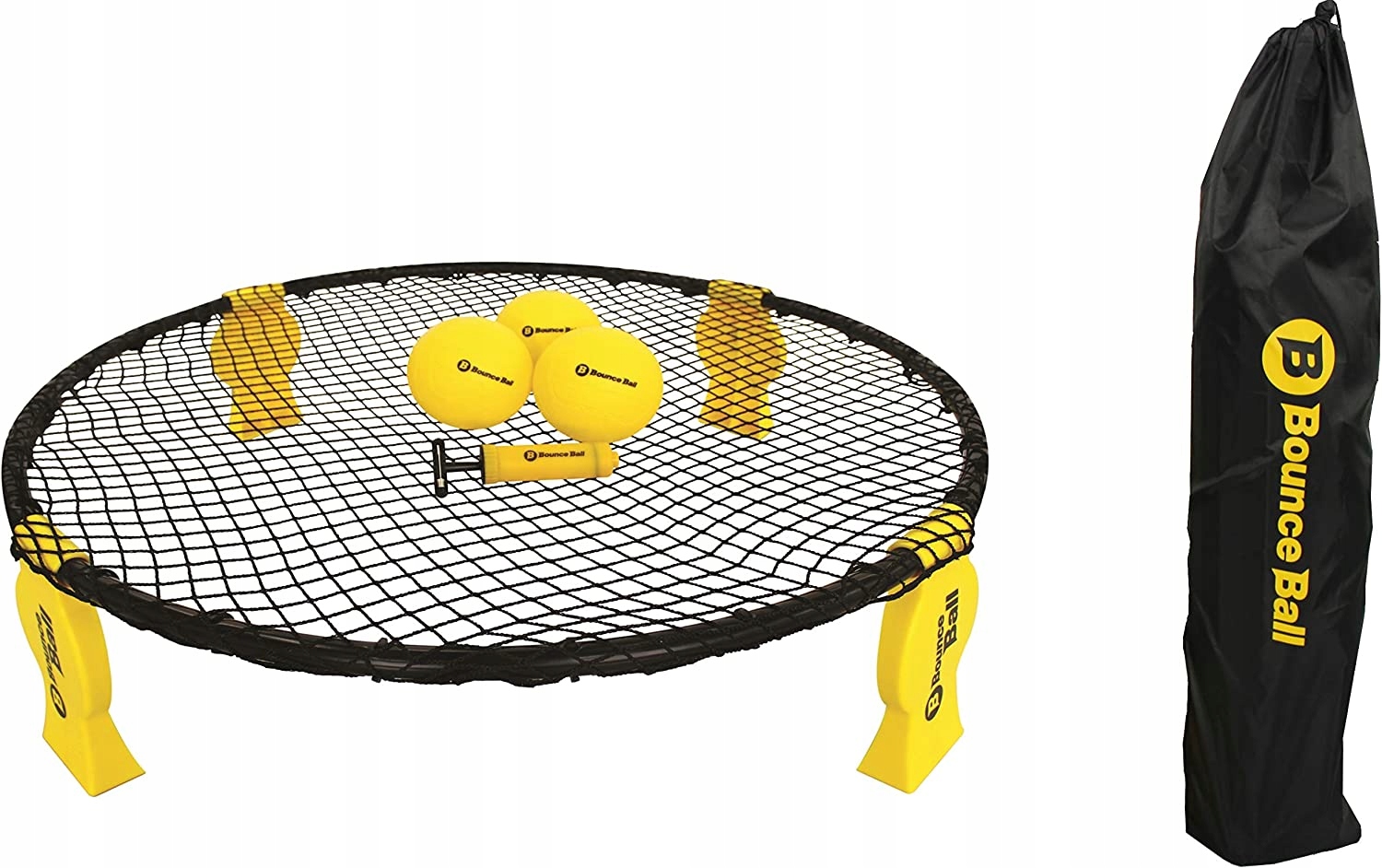 Набір Bounce Ball можна швидко й легко встановити, а завдяки складній круглій сітці та сумці для транспортування це зручно ідеально підходить для територій на відкритому повітрі, таких як сад, парк або пляж.