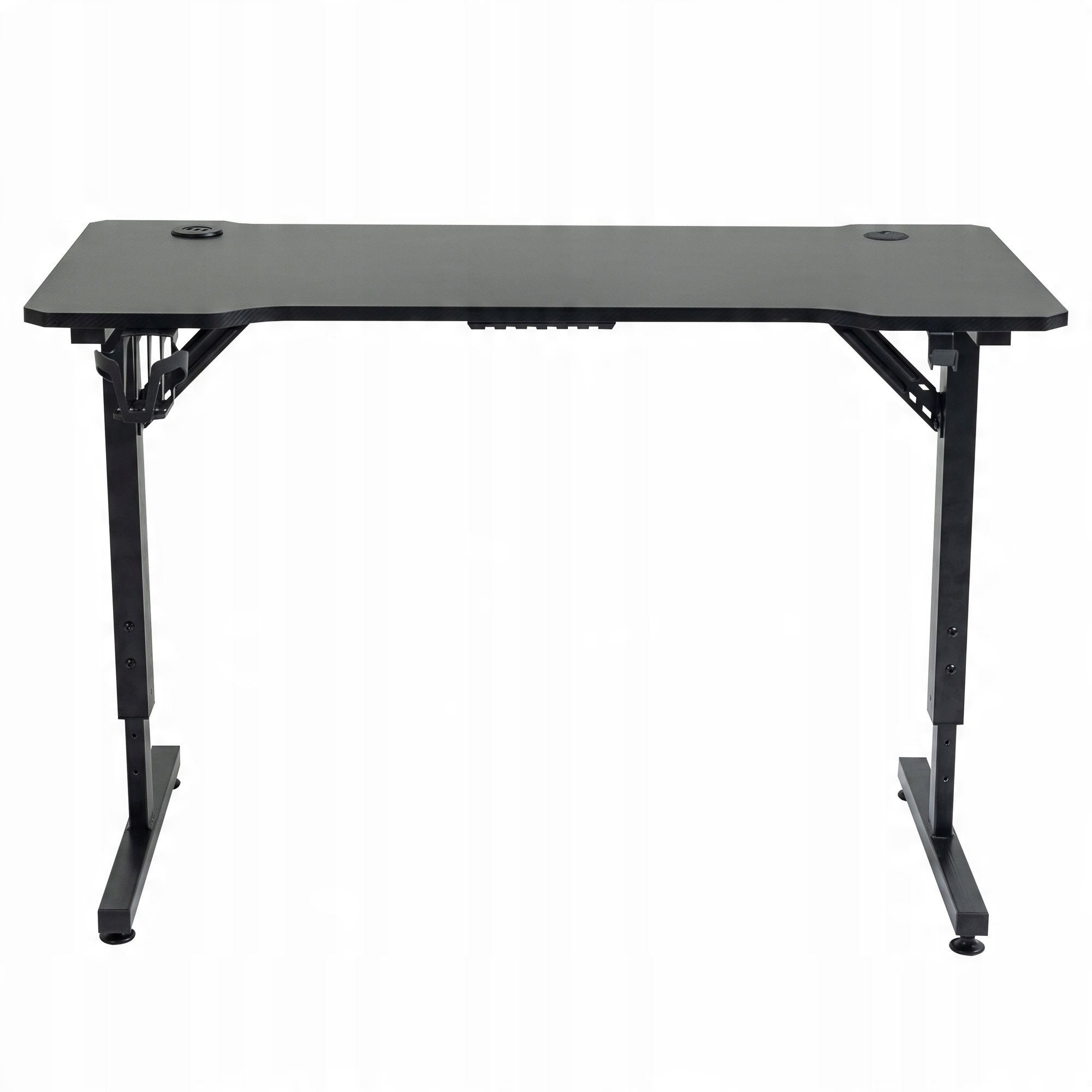 Регульовані ніжки столу дозволяють регулювати його висоту під зріст користувача, що забезпечує правильну поставу тіла під час тривалої роботи або розваг. Стільниця розміром 120 х 60 сантиметрів забезпечує достатню поверхню для розміщення монітора, клавіатури та миші, а також забезпечує комфортне місце для роботи. Сталева конструкція гарантує стійкість, а тримачі для напоїв, навушників і подовжувача полегшують утримання столу в порядку.