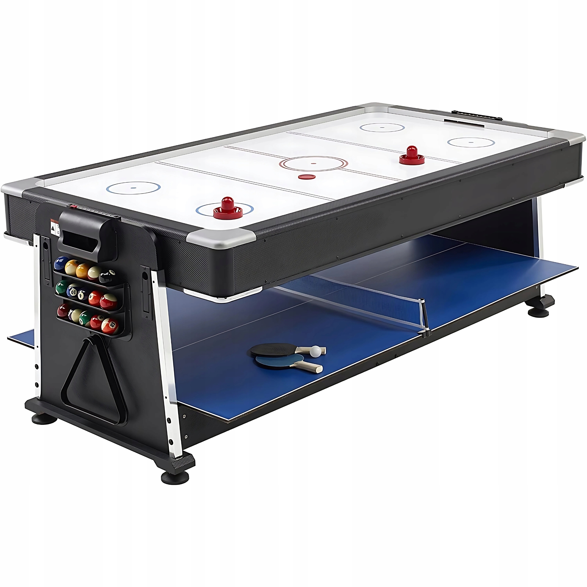 Усе, що вам потрібно в наборі - Стіл постачається з повним набором аксесуарів для більярду, хокею та настільного тенісу, що дозволяє вам грати та розважатися відразу без додаткових витрат.