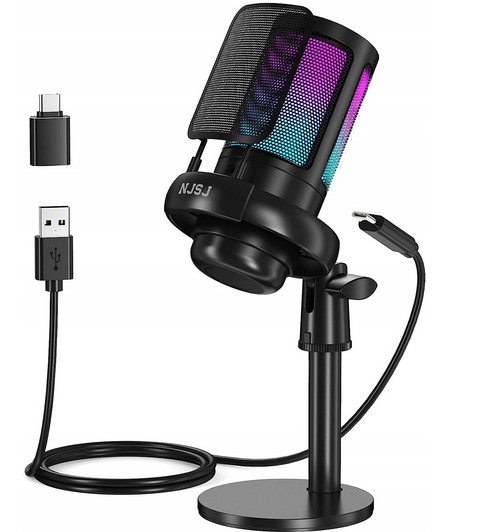USB ІГРОВИЙ МІКРОФОН ДЛЯ ПК RGB NJSJ ME6S З ПІДСТАВКОЮ