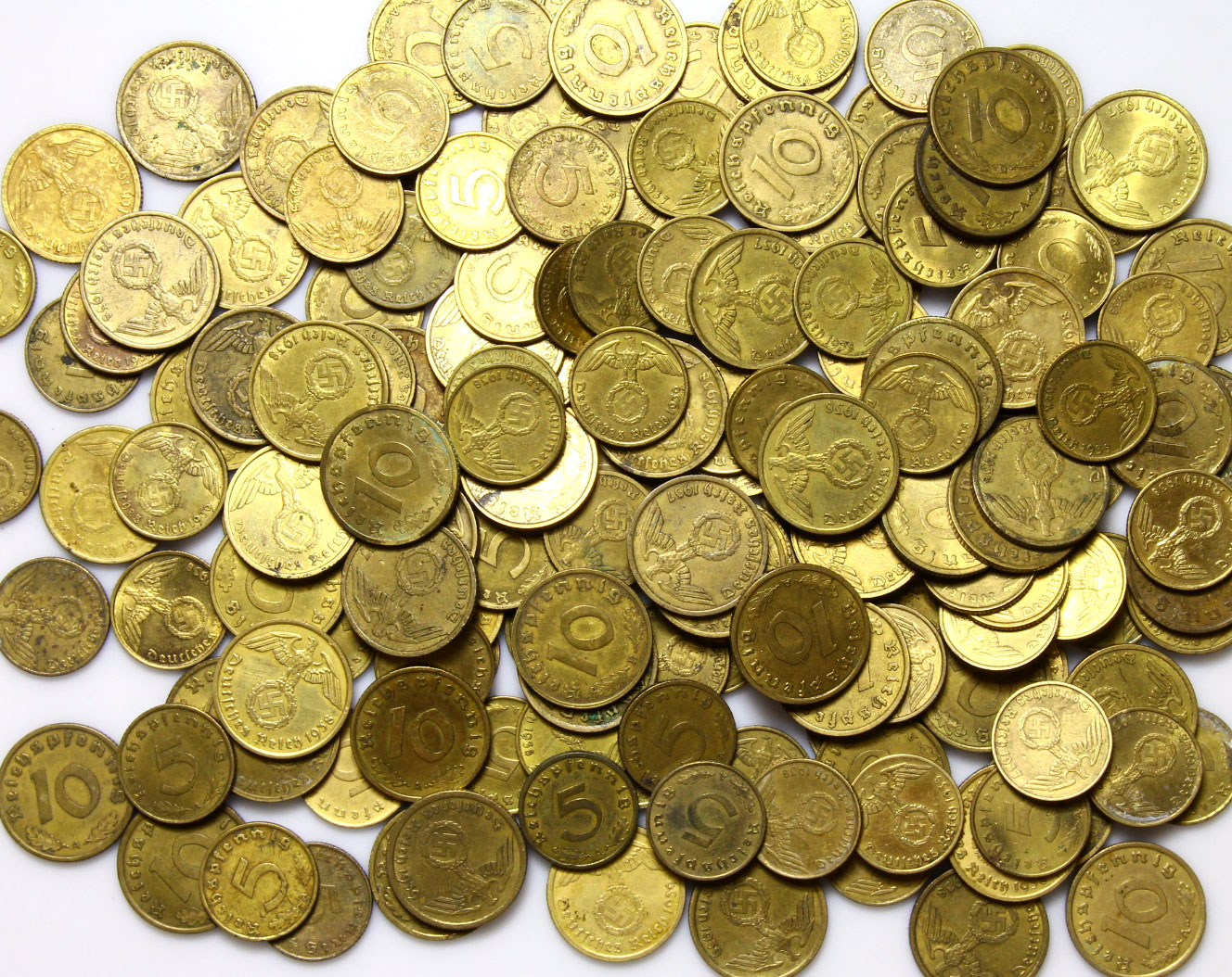 III Рейх монети 5 і 10 Pfennig латунь 100 шт.