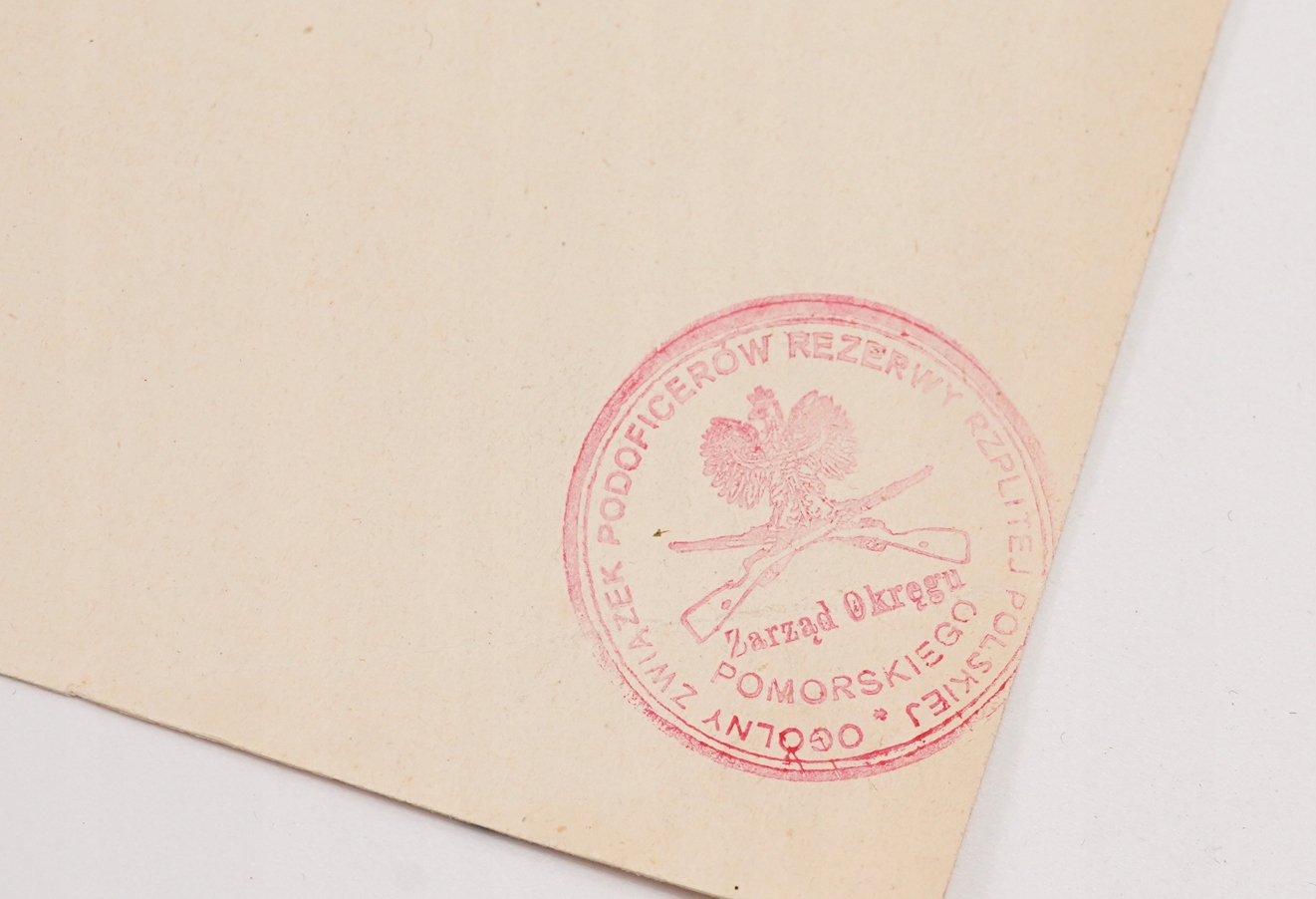 Оригінальний дуже цікавий надзвичайно рідкісний довоєнний патріотичний плакат, IIRP, Посмертний плакат - Юзеф Пілсудський Перший маршал Польщі - Тись Безсмертний, виданий /швидше за все/ Асоціацією офіцерів запасу IIRP, приблизно 1935 /після смерті Józef Piłsudski/, на звороті довоєнної печатки - Загальне товариство унтер-офіцерів Запасу Поморської окружної управи Республіки Польща; друк на цупкому папері, формат 49 х 38 см, стан відмінний, посередині слід горизонтального згину, біля лівого нижнього кута невеликий слід згину. Рекомендую, оригінальна, рідкісна річ за доступною ціною. Надзвичайно цікавий рідкісний оригінальний предмет. Стан добре видно на фото в описі аукціону.