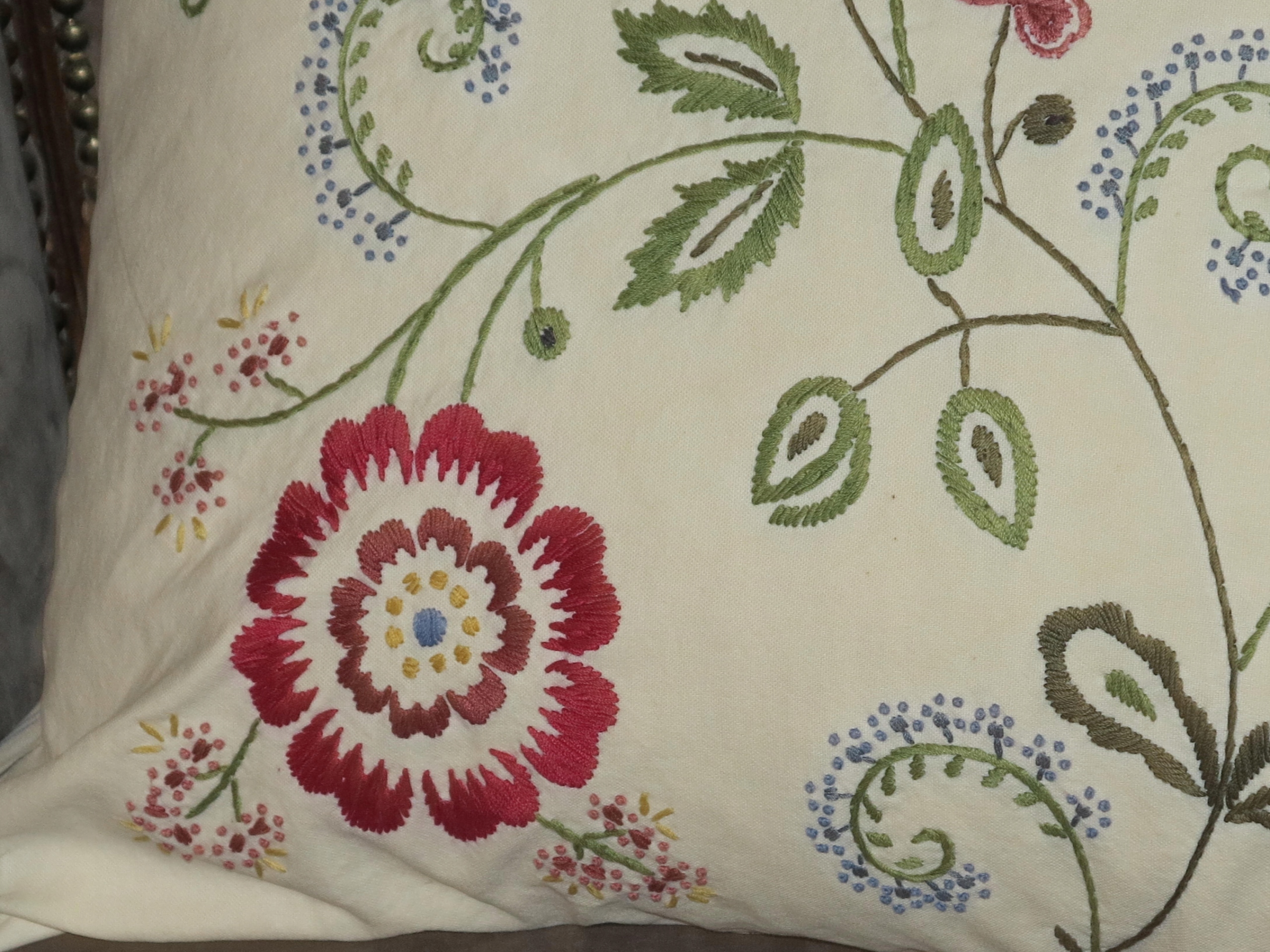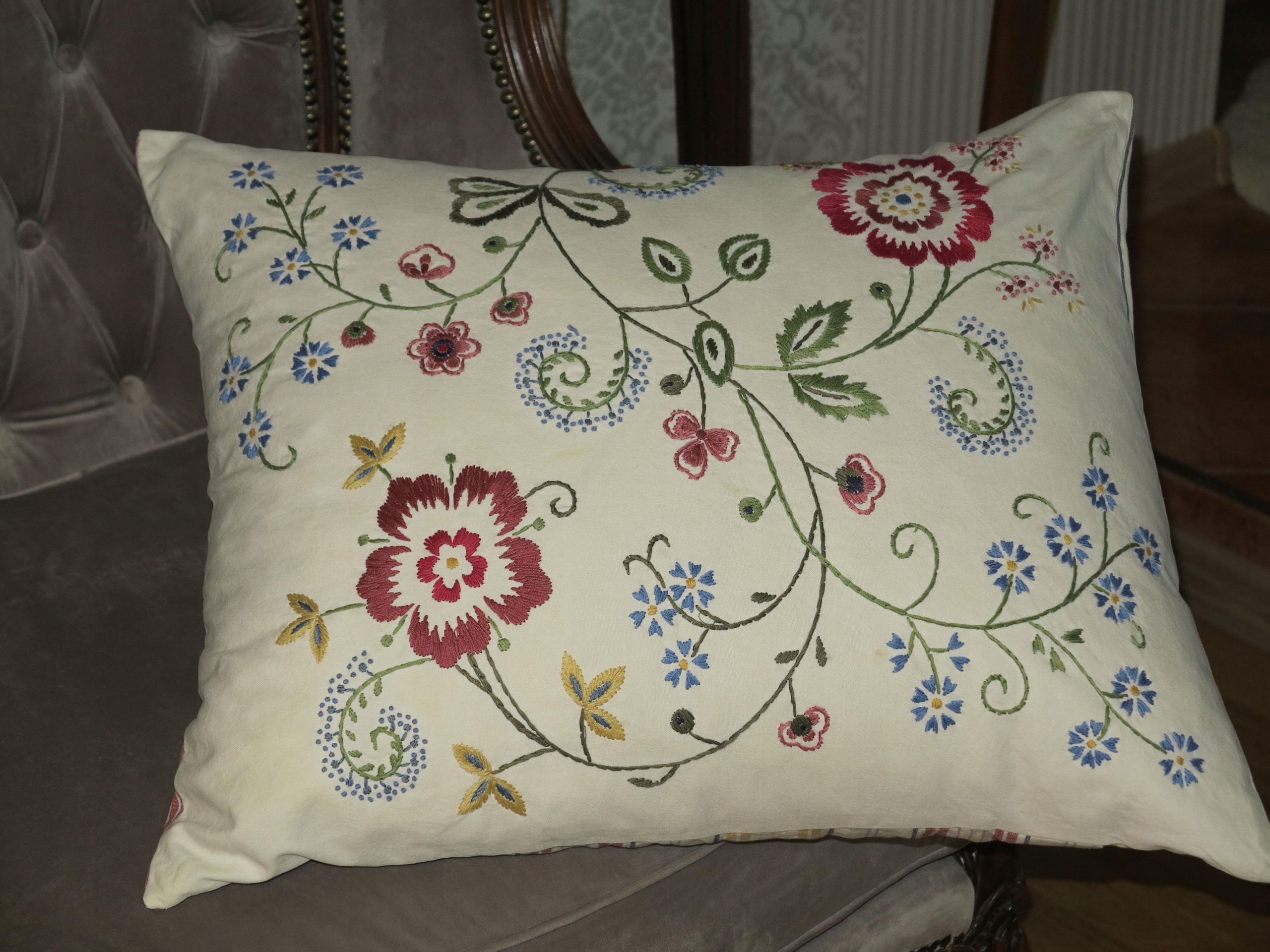 ikea alvine flora-beautiful велика подушка, виготовлена з міцної бавовняної огорожі з вишитим фронтом. подушка з натуральним начинкою з пір’ям. Дуже пухнаста і повна