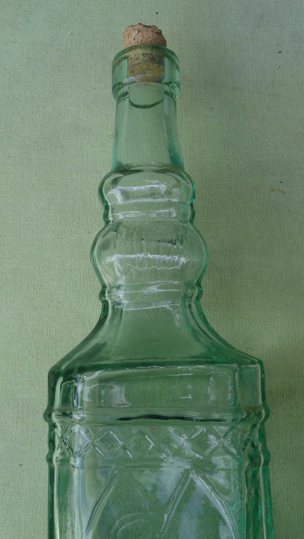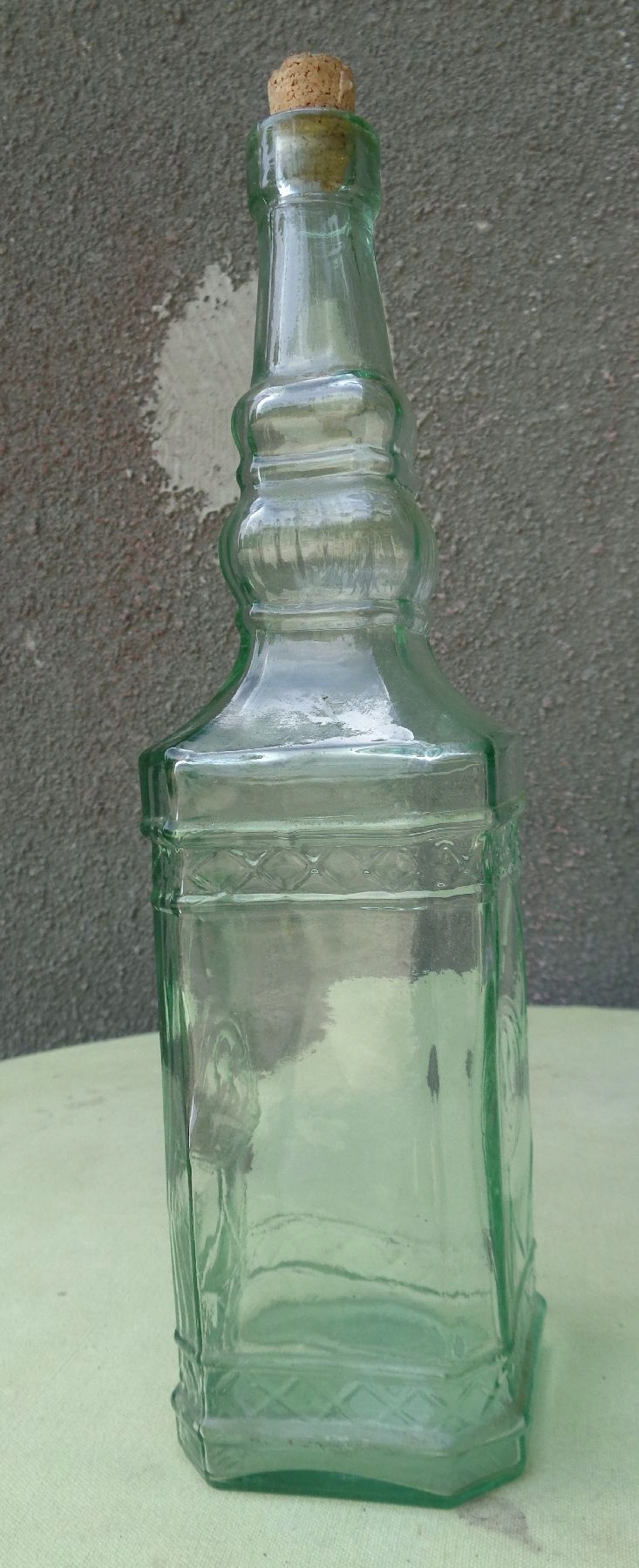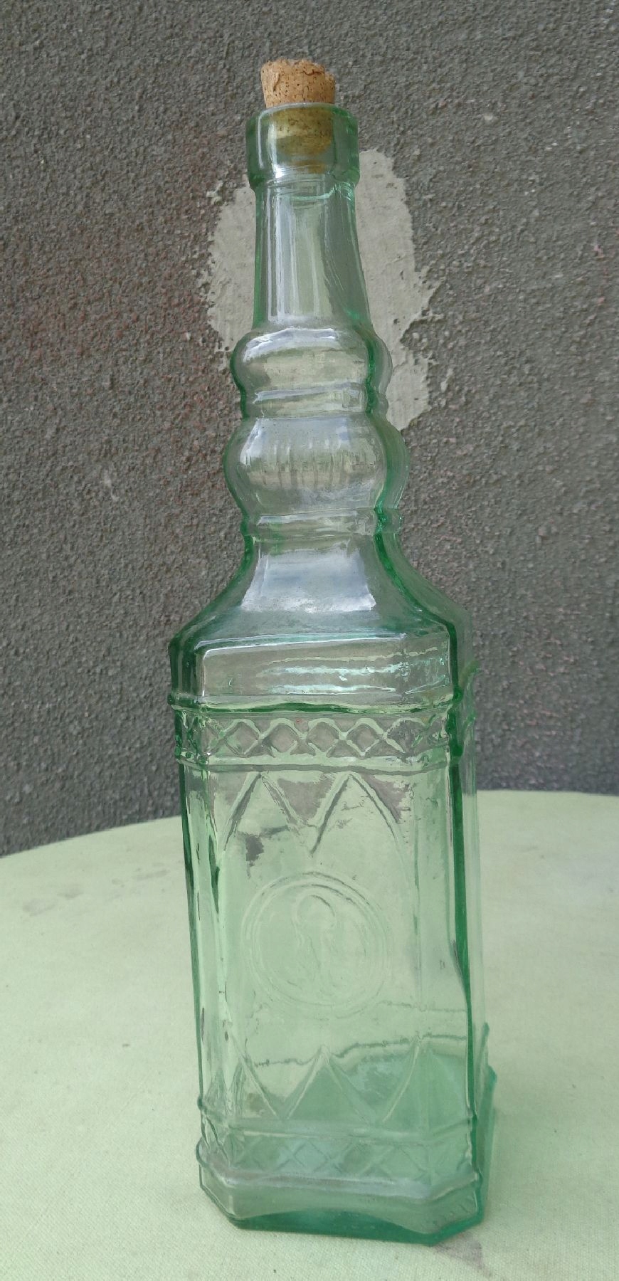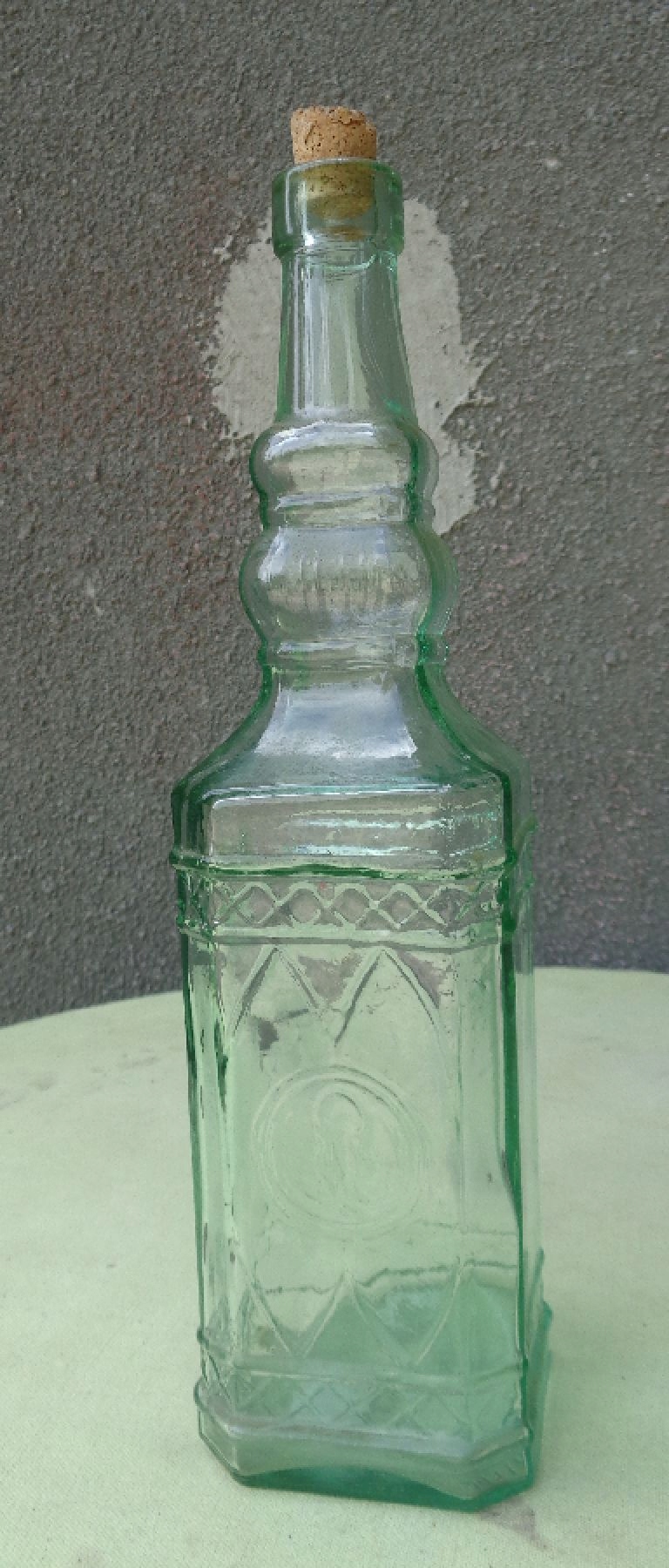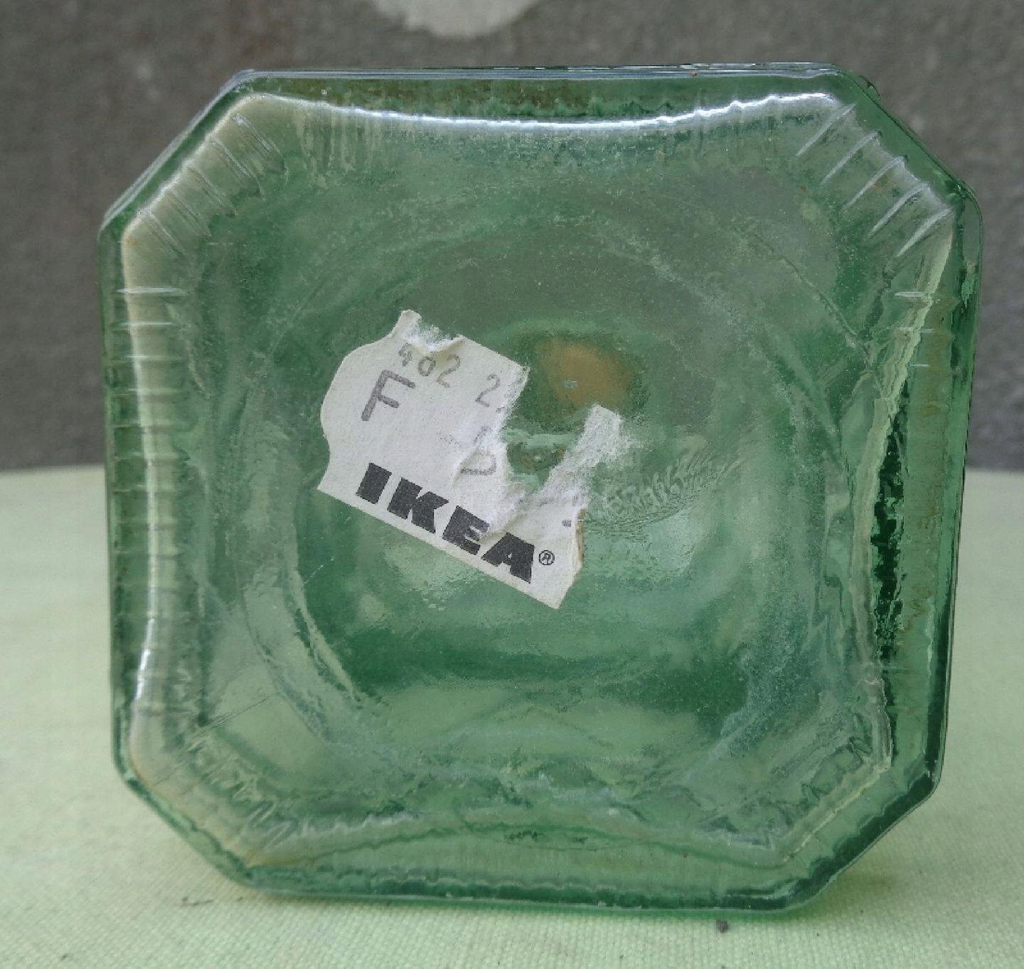 Цікава пляшка 1980-х від мережі магазинів Ікеа. Чаша експоната багато прикрашена різноманітним орнаментом. Горлечко пляшки також було цікаво та багато декоровано. Скло без пошкоджень. Етикетка магазину знаходиться внизу і видно на фотографіях. Рекомендую всім.