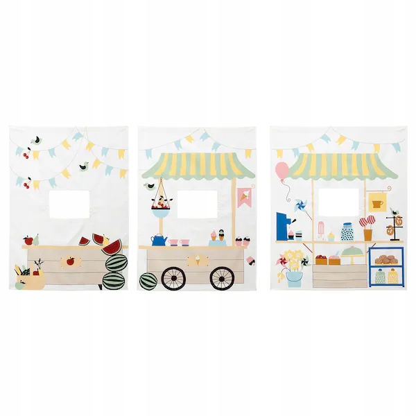 - Кожна кабінка має отвір , тож діти можуть грати як усередині, так і зовні, змінюючи роль продавця чи клієнта.
