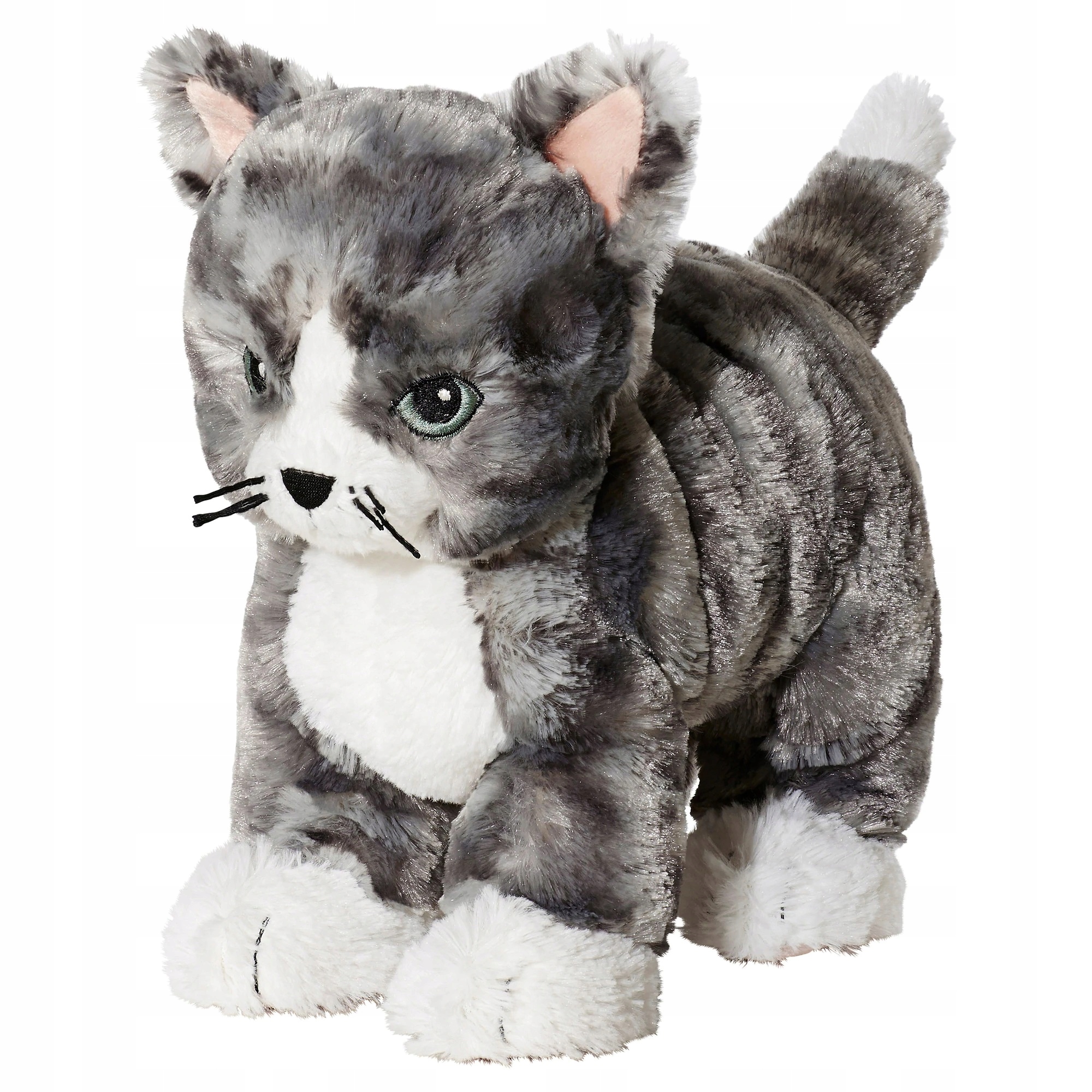Плюшева іграшка, сірий кіт, білий