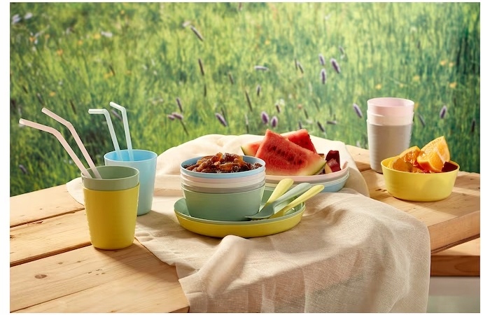 Набір дитячого посудуIkea з колекції Kalas. Барвистий, ударостійкий і зручний для тримання. Ідеально підходить для маленьких дітей, які, як правило, кидають, розливають і створюють безлад, коли вчаться годувати самостійно.