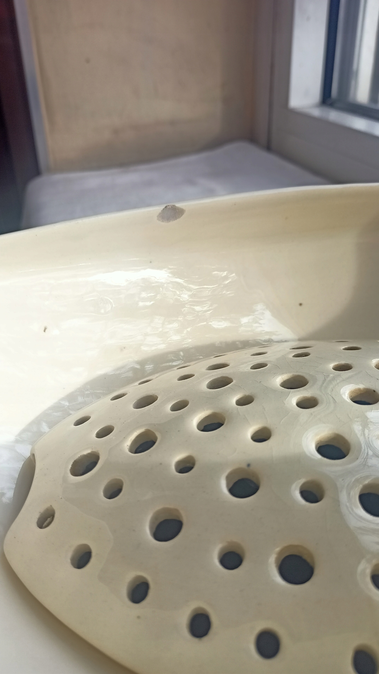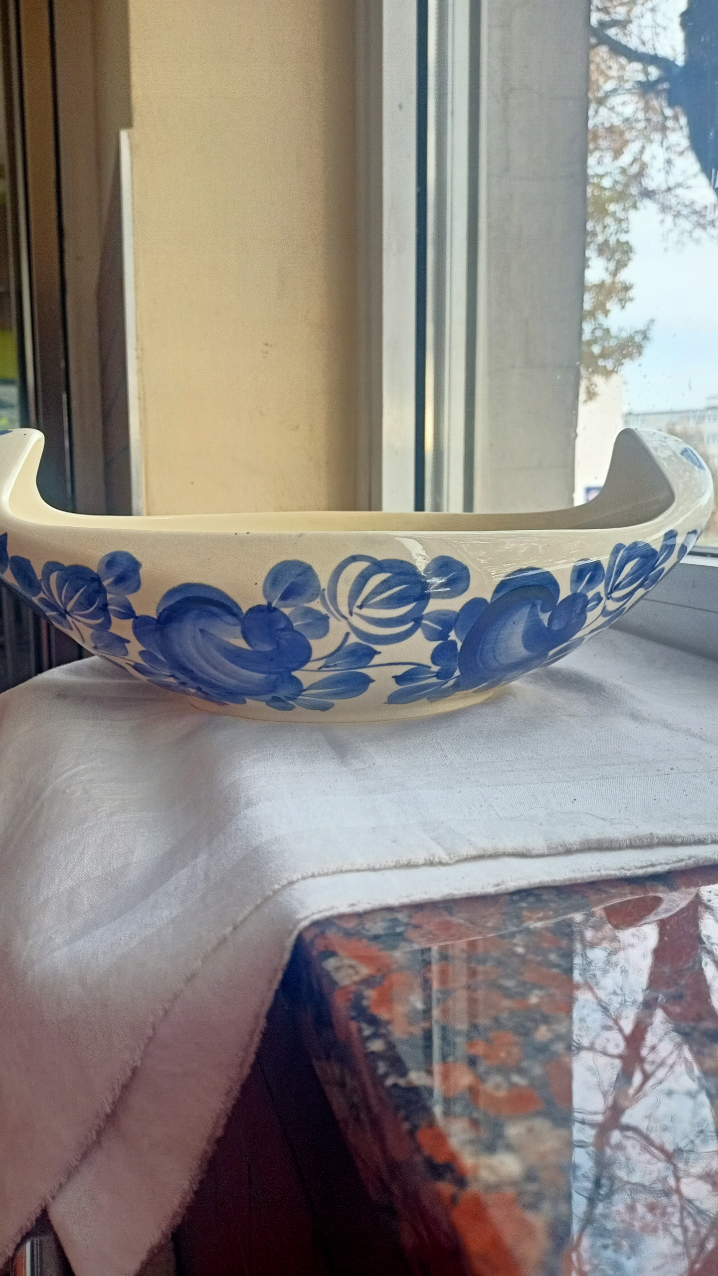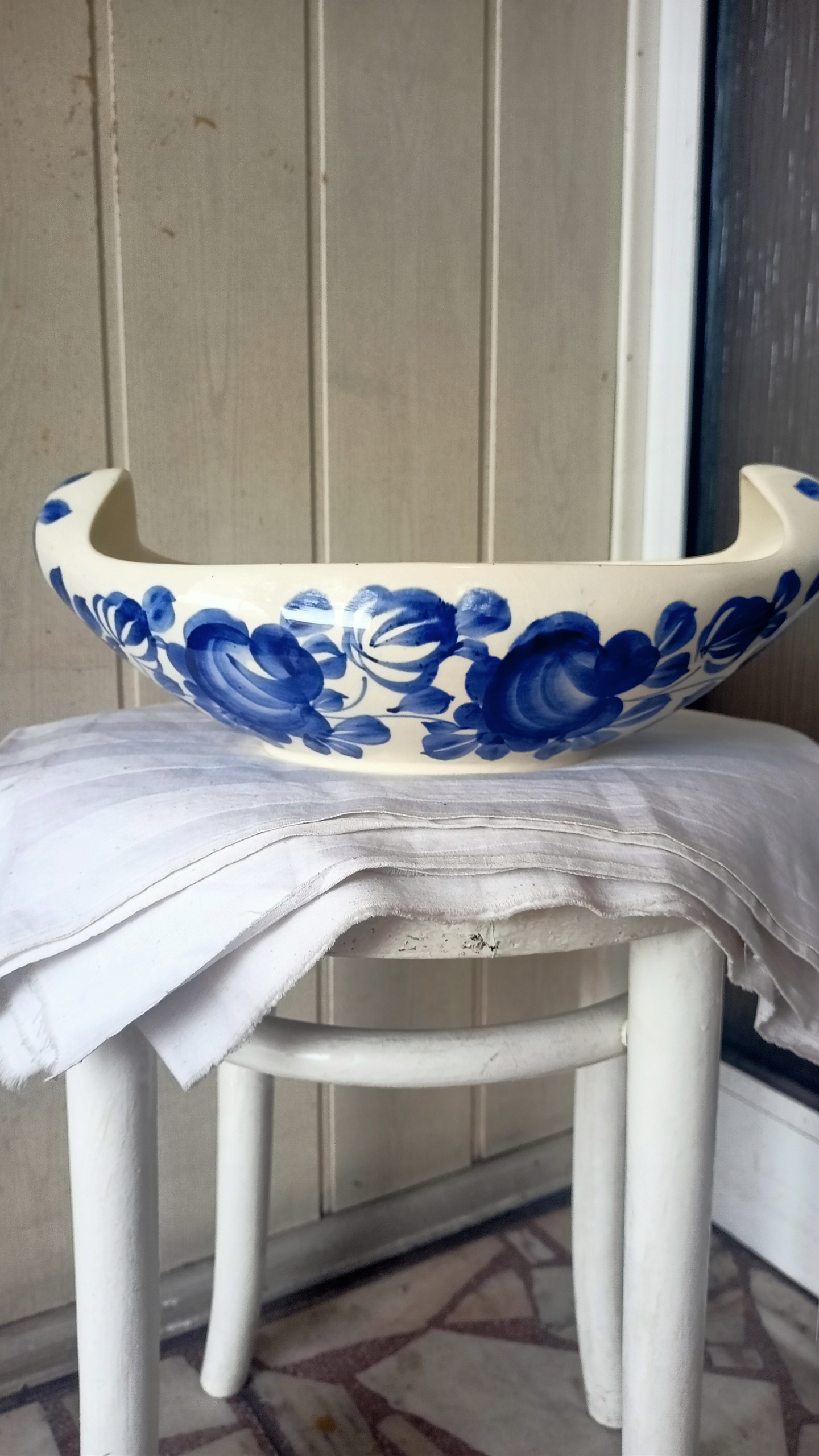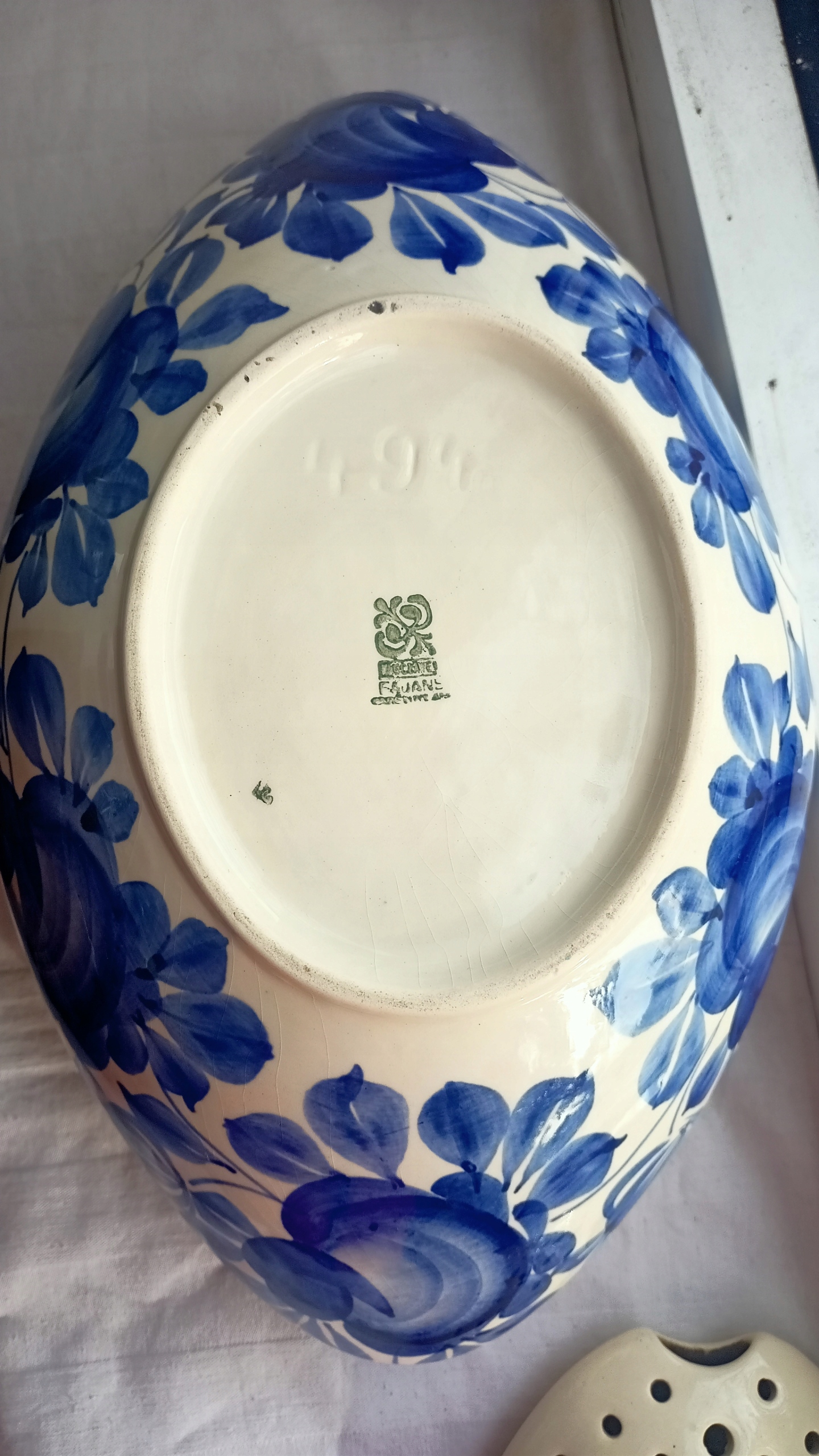 - Фаіон, стрілянина, пофарбована емаль. Ікебана довжиною 34 см; Шириною 20 см і висотою 12,5 см. Ікебана з вставкою.