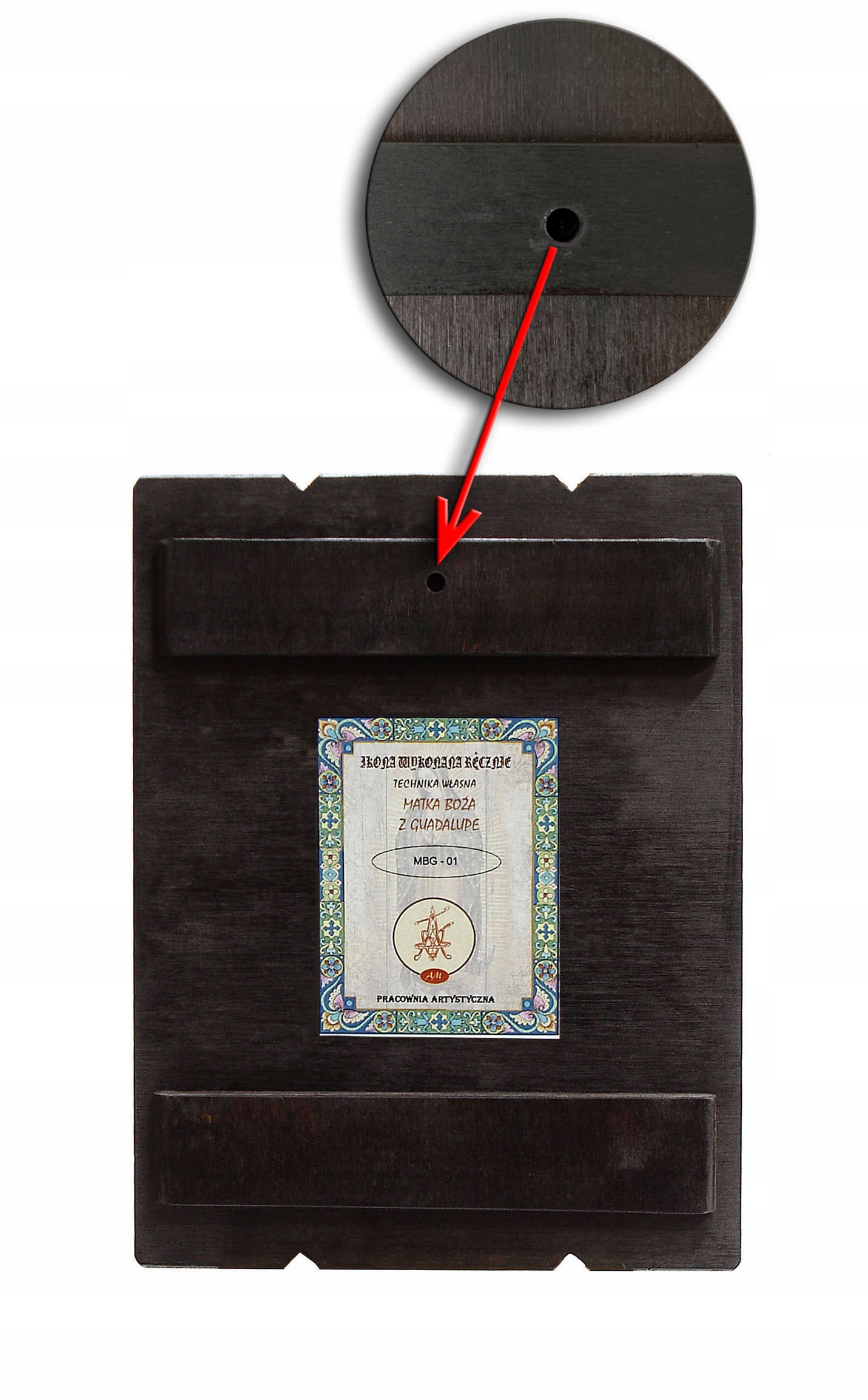 - просвердлений отвір ззаду для підвішування ікони li>