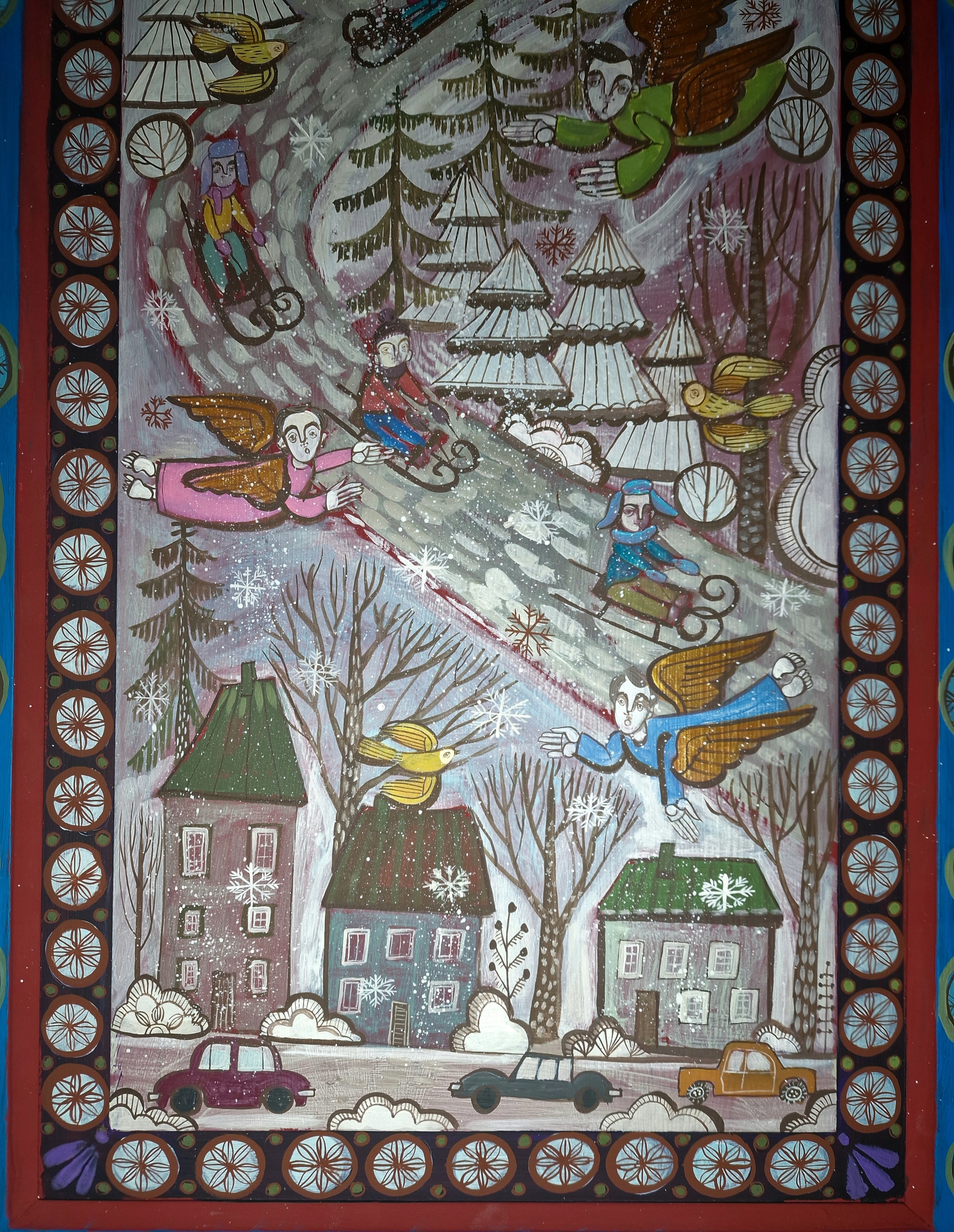 ІКОНА В НАРОДНОМУ СТИЛІ АНГЕЛИ ВЗИМІ - МОНІКА КВЄЦІНСЬКА