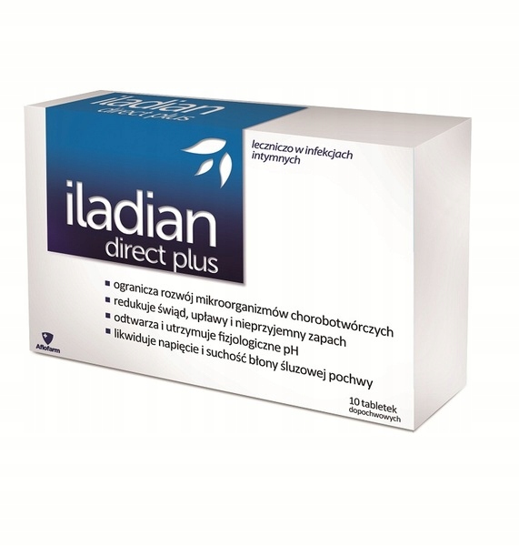 Застосування: Препарат можна використовувати як допоміжний засіб при лікуванні вагінальних запалень та зняття таких недуг, як: свербіж, сухість піхви та відчуття стягнутості слизової оболонки. Іладіан Директ також застосовують під час антибіотикотерапії та жінкам, які регулярно відвідують басейн, користуються джакузі, солярієм і сауною.