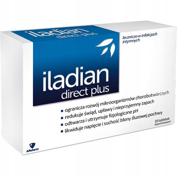 ОПИС:Медичний виріб Iladian direct plus to вагінальні таблетки, які, відновлюючи або підтримуючи фізіологічний pH піхви, створюють умови, що пригнічують ріст бактерій, відповідальних за бактеріальний вагіноз, і дріжджових грибів Candida. Показання: Iladian direct plus рекомендується: - як допоміжний засіб при лікуванні бактеріального вагінозу, - для полегшення таких захворювань, як сухість і відчуття стягнутості слизової оболонки піхви, - під час і після застосування пероральні антибіотики та антибактеріальні препарати, - під час перименопаузи (менопаузи), - жінки, які відвідують басейн, часто подорожують, користуються джакузі, сауною та солярієм. Іладіан директ плюс можна застосовувати вагітним після консультації лікаря. СПОСІБ ЗАСТОСУВАННЯ: Для підтримки лікування вагінальних інфекцій використовуйте 1 вагінальну таблетку один раз на день (на ніч) протягом 7-10 днів. Таблетку слід помістити глибоко в піхву. Для профілактики застосовувати по 1 вагінальній таблетці 2 рази на тиждень. Таблетку слід помістити глибоко в піхву. СКЛАД: