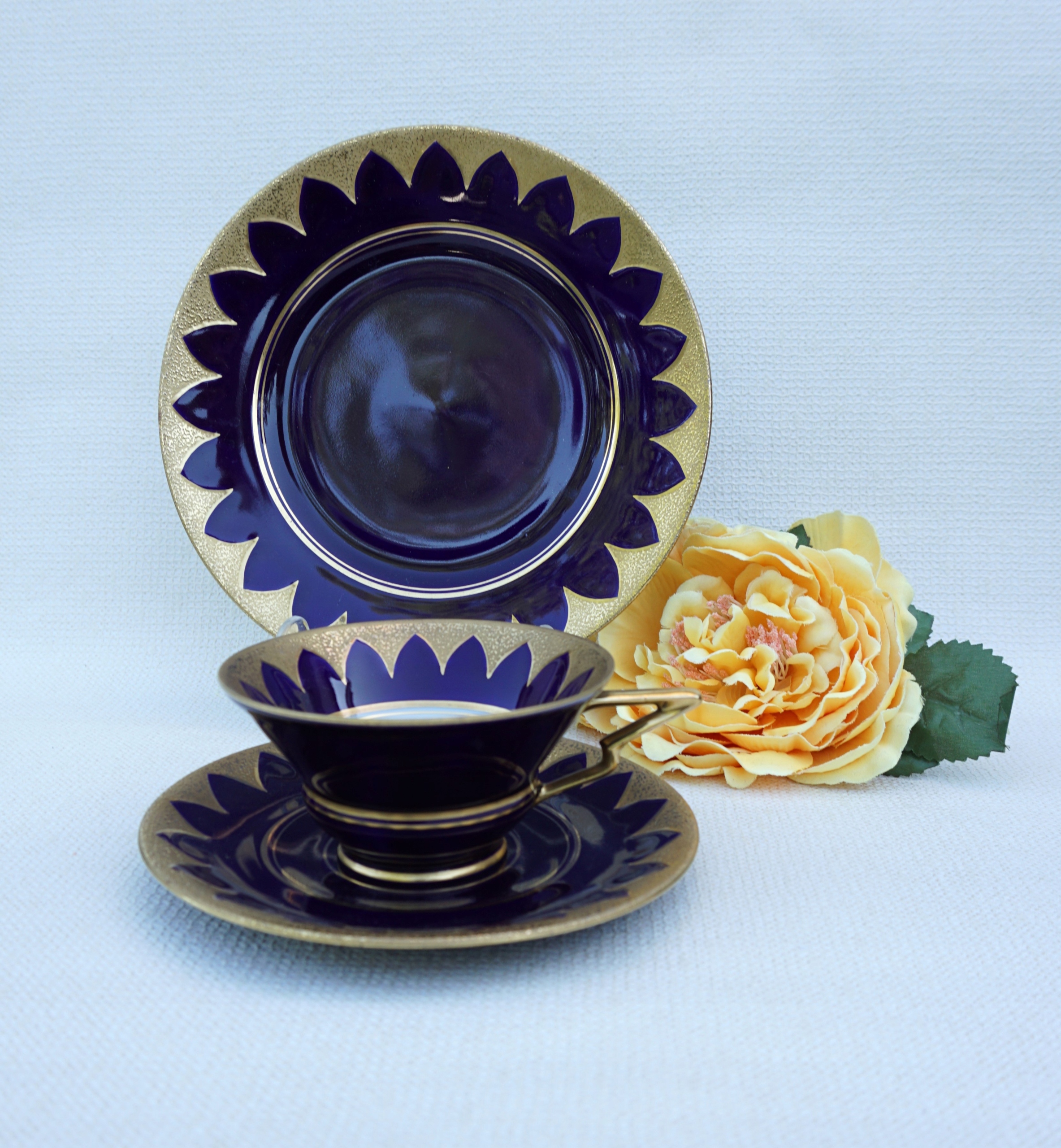 Ільменау: багатий набір для сніданку! Тріо! Кобальт, гравіроване золото!
