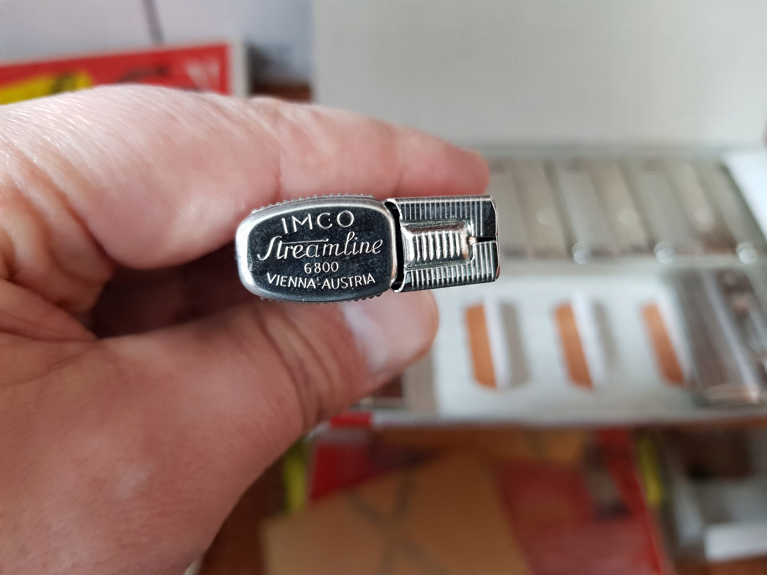 надійний і довговічний металевий газ легше легендарної марки IMCo, модель Streamline 6800 з дивовижною історією, що походить від Першої світової війни, коли IMCO розпочала виробництво перших запалених масштабів після картриджів (у 1918 році під назвою Österreichische Knopf- und Metallware, створеного Імконом.