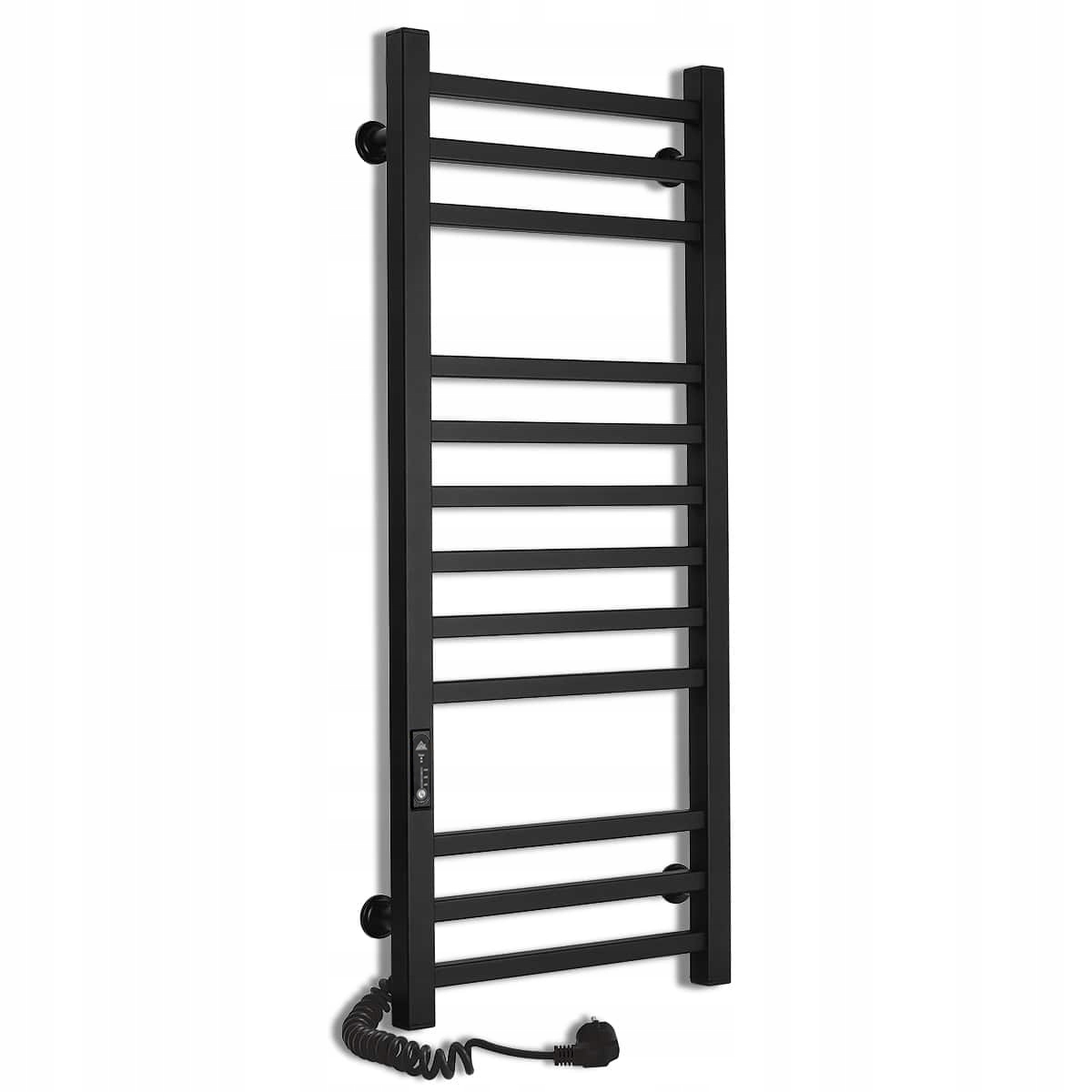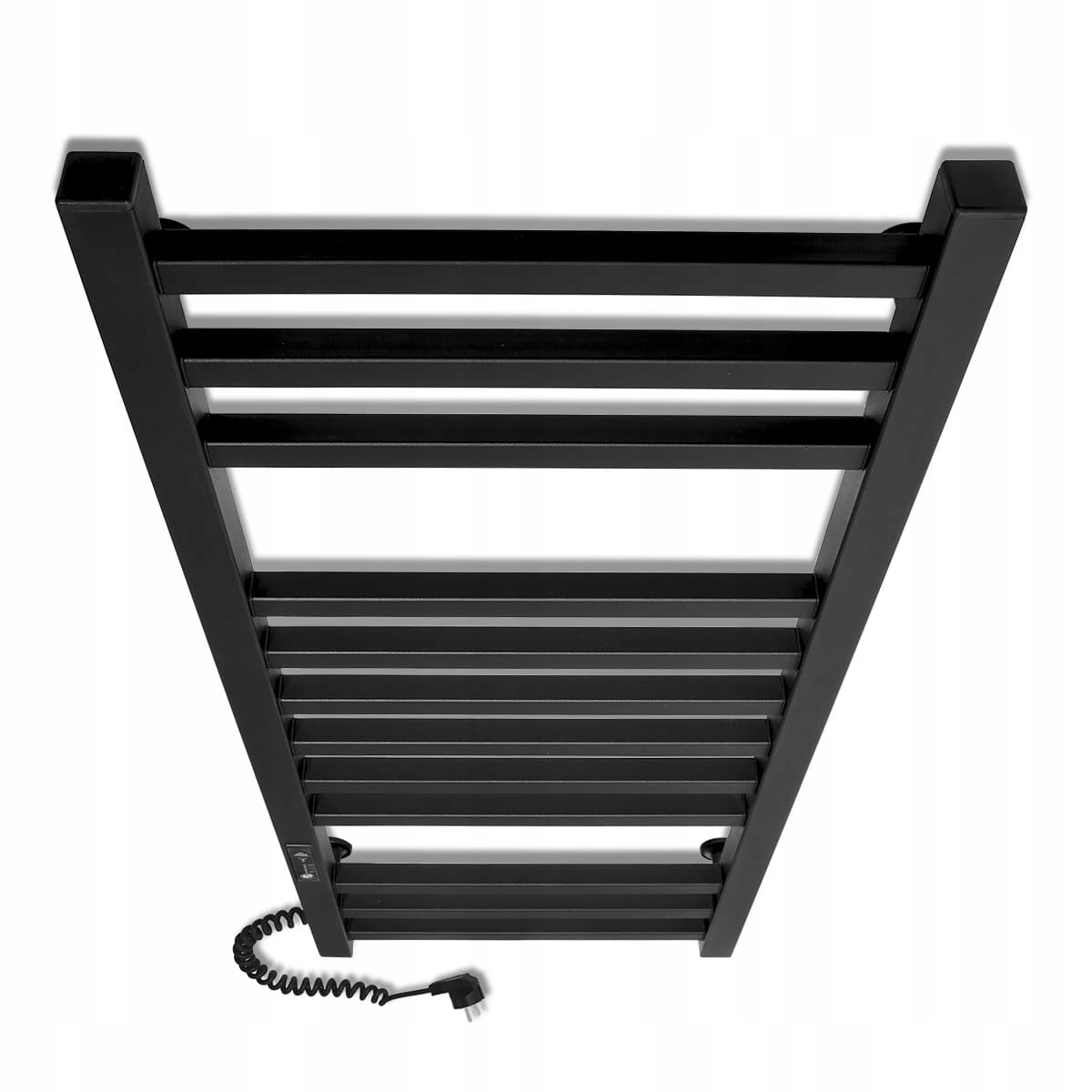 - специфікація: Матеріал: sвуглецевий талій, полімер Покриття: біла/чорна порошкова фарба Тип покриття: матовий/глянцевий Частота струму: 50 Гц Напруга живлення: 220 В Регулятор: кнопка з екраном (на підставці) Розташування кабелю: праворуч (задній вихід)/ліворуч - нагрівається швидше; - споживає менше енергії (порівняно з водяним радіатором); - можна встановити в будь-якому положенні (порівняно з водяним радіатором); Увага! Переваги: Електрична рушникосушка оснащена сухим нагрівальним елементом. Ви можете вибрати тип підключення (праворуч або ліворуч). Гарантія 60 місяців Випробування на пробій ізоляції проводиться при напрузі 1500 В