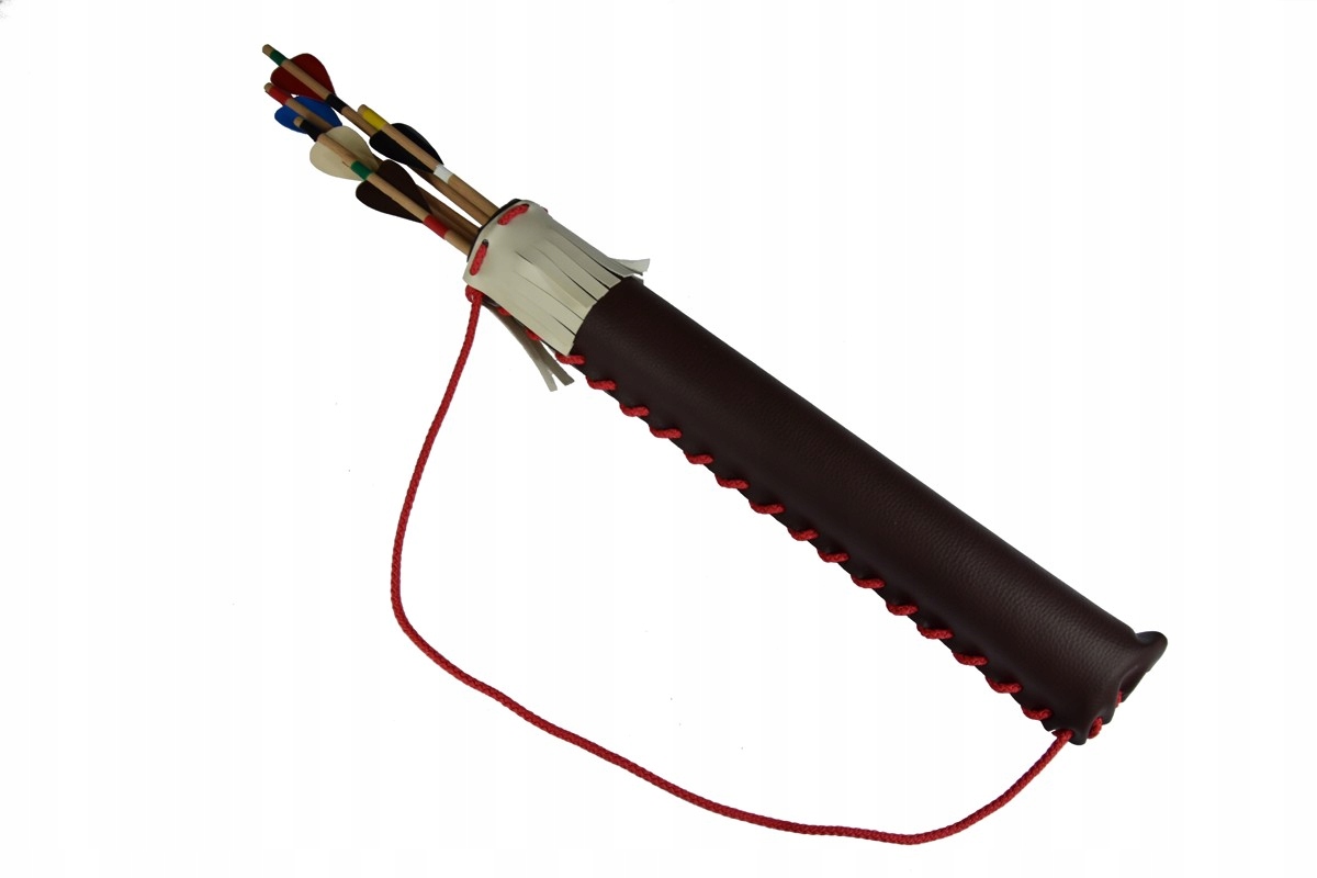 Колчан оздоблений матеріалом, схожим на шкіру.