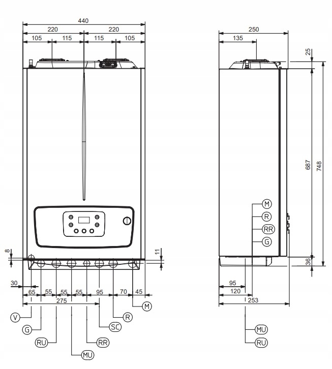 - плавна електронна модуляція центрального опалення. та ГВП, самодіагностика котла