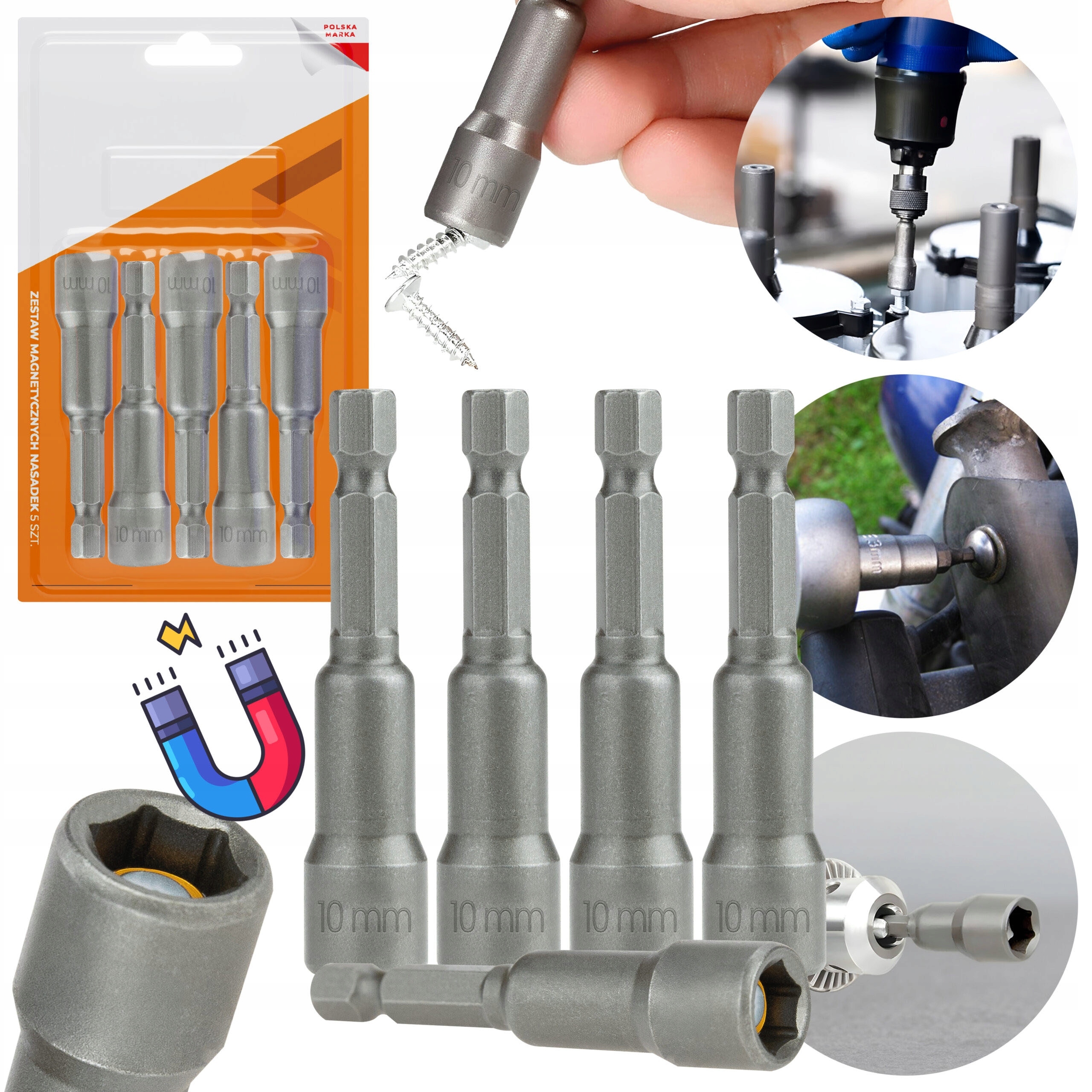 Набір із п'яти головок з магнітним ударом 10 мм є ідеальним доповненням до викруток і дрилів. Завдяки високій якості вуглецева сталь 55, вони міцні та ідеально підходять для загвинчування та відгвинчування шестигранних гвинтів у багатьох ситуаціях.