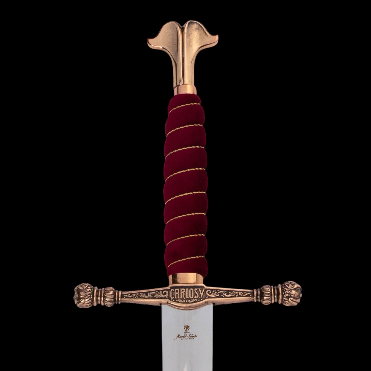 Приголомшлива копія меча Карла V Габсбурга. Він жив у 16 столітті як король Іспанії, привів до об’єднання цієї країни, а також проводив активну зовнішню політику з іншими європейськими країнами.