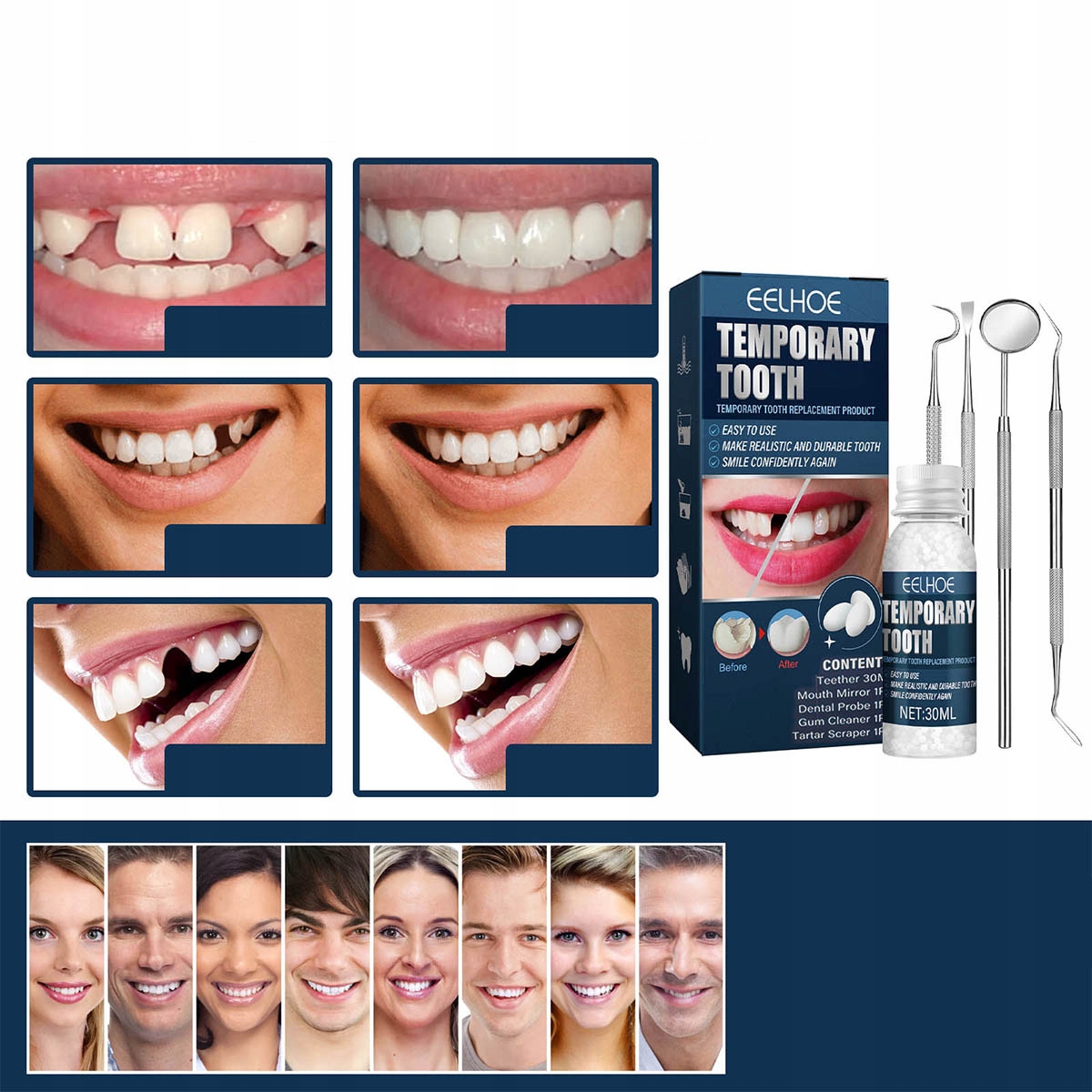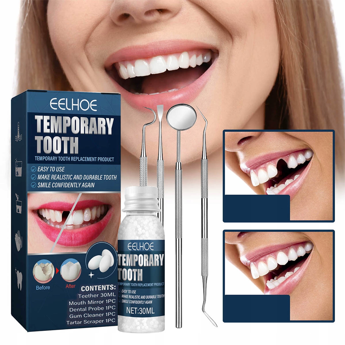 ✨Набір для ремонту тимчасових зубів, штучні зубні імплантати з 4 інструментами✨