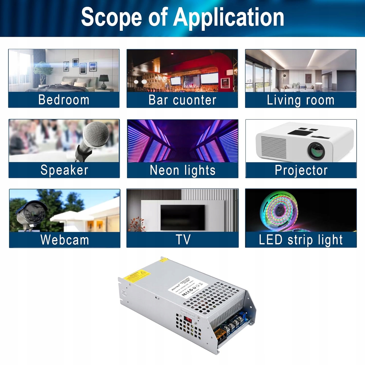 - 【Широке застосування】 Джерело живлення 24 В. Широко використовується в побутовій техніці 24 В постійного струму, електронних пристроях, світлодіодному освітленні, прогресивних двигунах, відеоспостереженні, безщіткових двигунах, обладнанні для автоматизації, ІТ-проектах промислових джерел живлення.