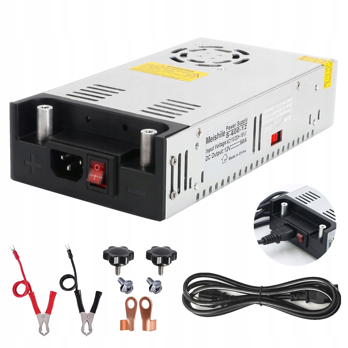 Вхідна напруга: вхід змінного струму 220 В/110 В, вихід 12 В, номінальна потужність 50 A 600 Вт, перетворення живлення змінного струму в постійний, живлення кількох пристроїв різними струмами/ватами.