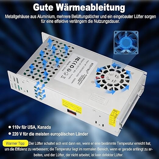 Високоякісний b> блок живлення 12 В, високоякісний флюсовий матеріал і кілька вентиляційних отворів, глянсовий алюмінієвий корпус для хорошого відведення тепла, вбудований індикатор стан.