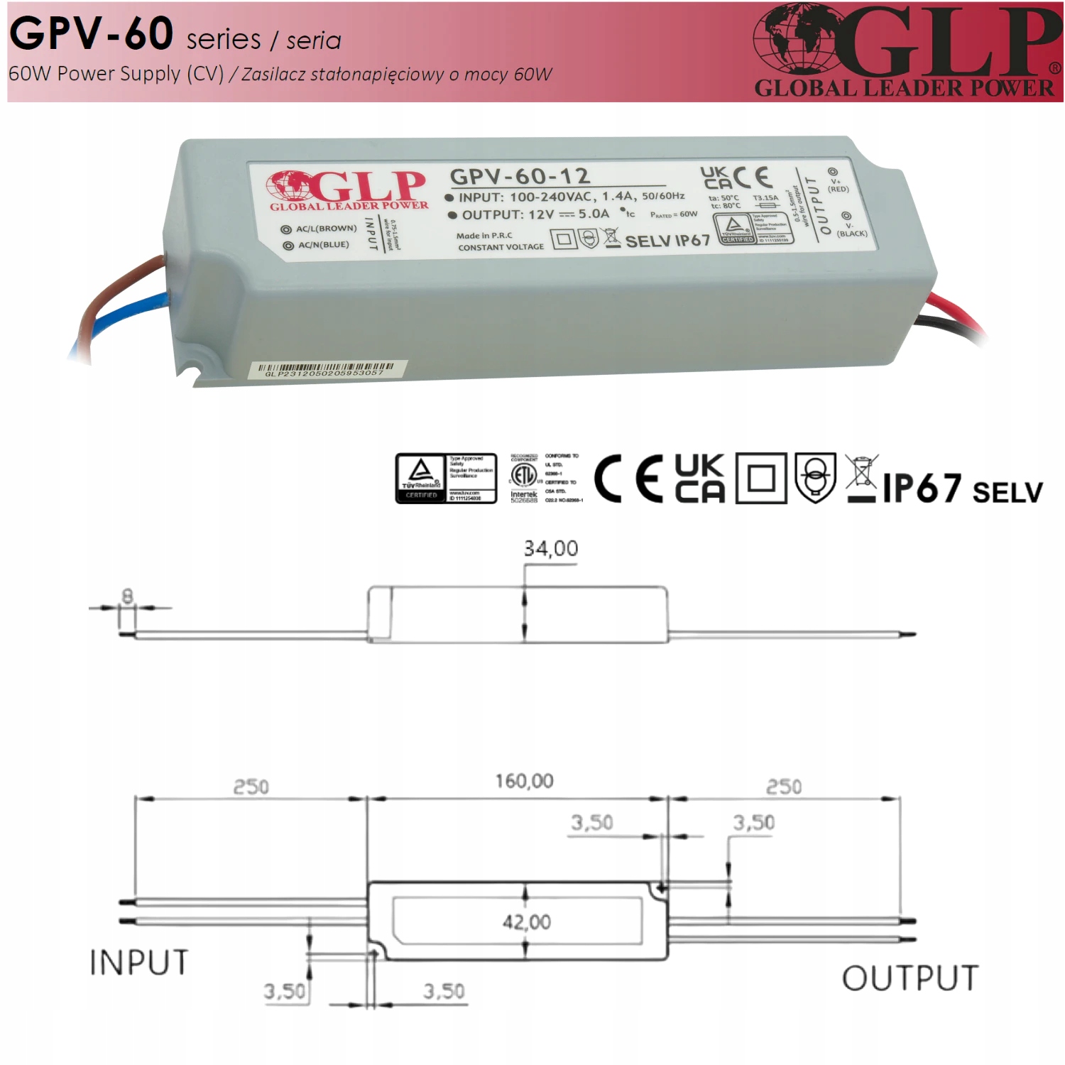 Імпульсний ДЖЕРЕЛО ЖИВЛЕННЯ 12V/5A/GPV-60-12 IP67