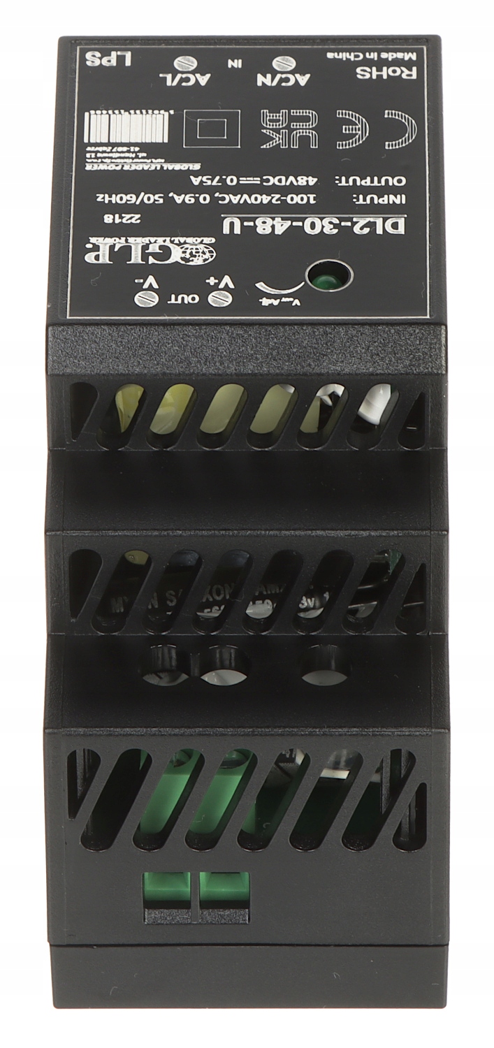 Імпульсний блок живлення, встановлений на рейку TS35/7.5 або 15 DIN, стійкий до високих робочих температур (до 70°C).