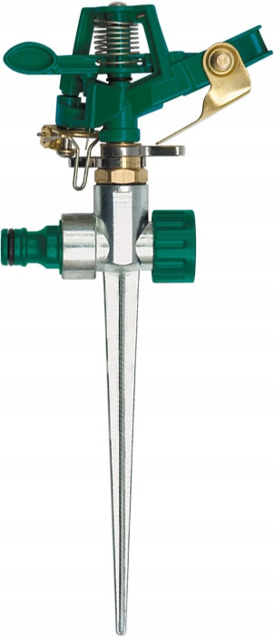 Роторний, імпульсний спринклер. Шпилька виготовлена зі сплаву цинку і дозволяє легко та зручно розміщувати її навіть на дуже компактних поверхнях газону. Спринклер працює в діапазоні від 45 до 360 градусів. Він оснащений швидким роз'ємом і закривається заглушкою. Максимальний діаметр розпилення пристрою становить 24 м.