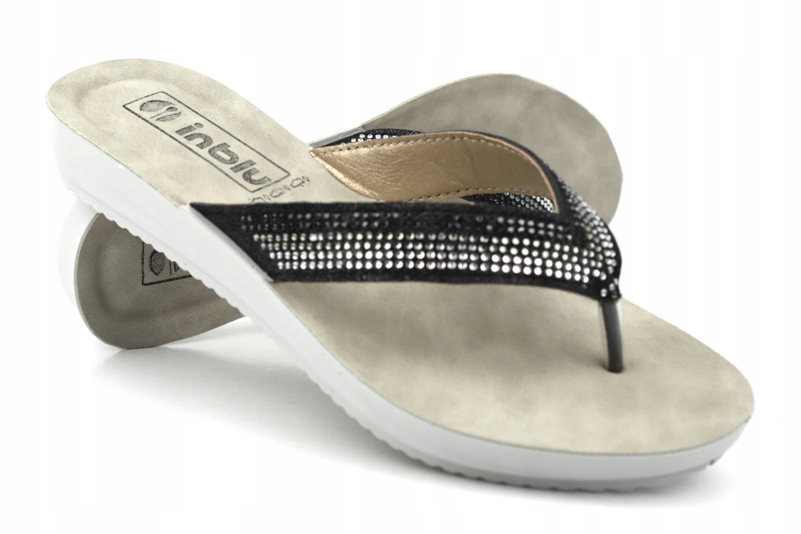 Жіночий INBLU BM-64, чорні та чорні шльопанці inblu були виготовлені з екологічної шкіри у чорному кольорі з блиском.
