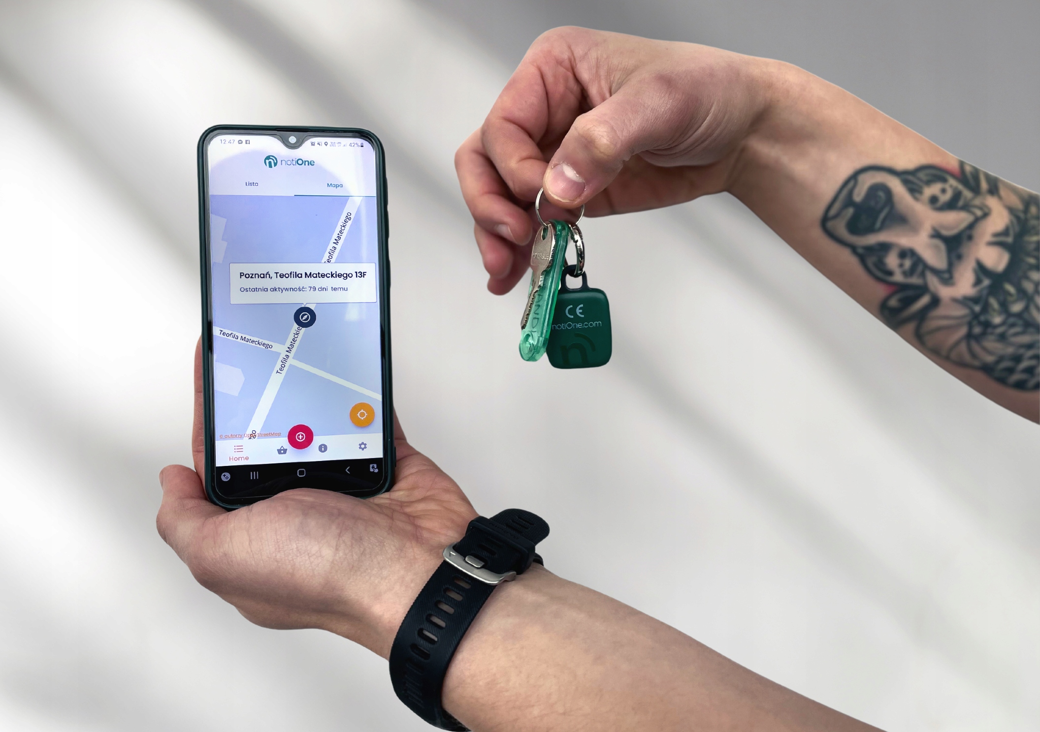 Акумулятор у локаторі Concemene працює до року. Інформацію про її стан можна знайти в програмі після натискання піктограми "I". Після заміни використаного акумулятора новим пристрій знову працюватиме.