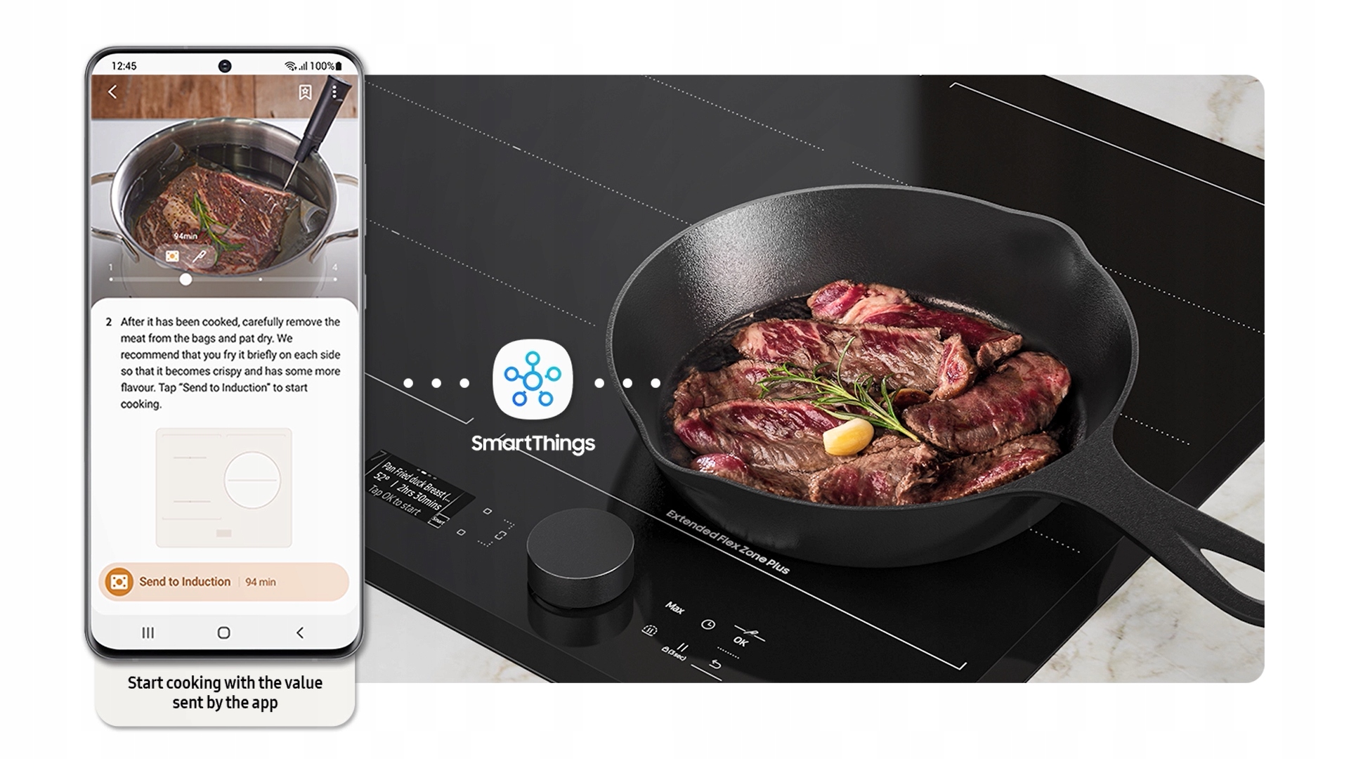 З SmartThings Cooking приготування стає ще приємнішим і допомагає заощадити дорогоцінний час! Завдяки цій функції програма рекомендує персоналізовані рецепти, адаптується до дієтичних уподобань користувача та створює тижневий план харчування. Функція Assist Cook також дозволяє дистанційно контролювати налаштування варильної панелі, а датчик внутрішньої температури стежить за температурою вашої їжі, щоб забезпечити її належне приготування відповідно до налаштувань, надісланих через додаток.