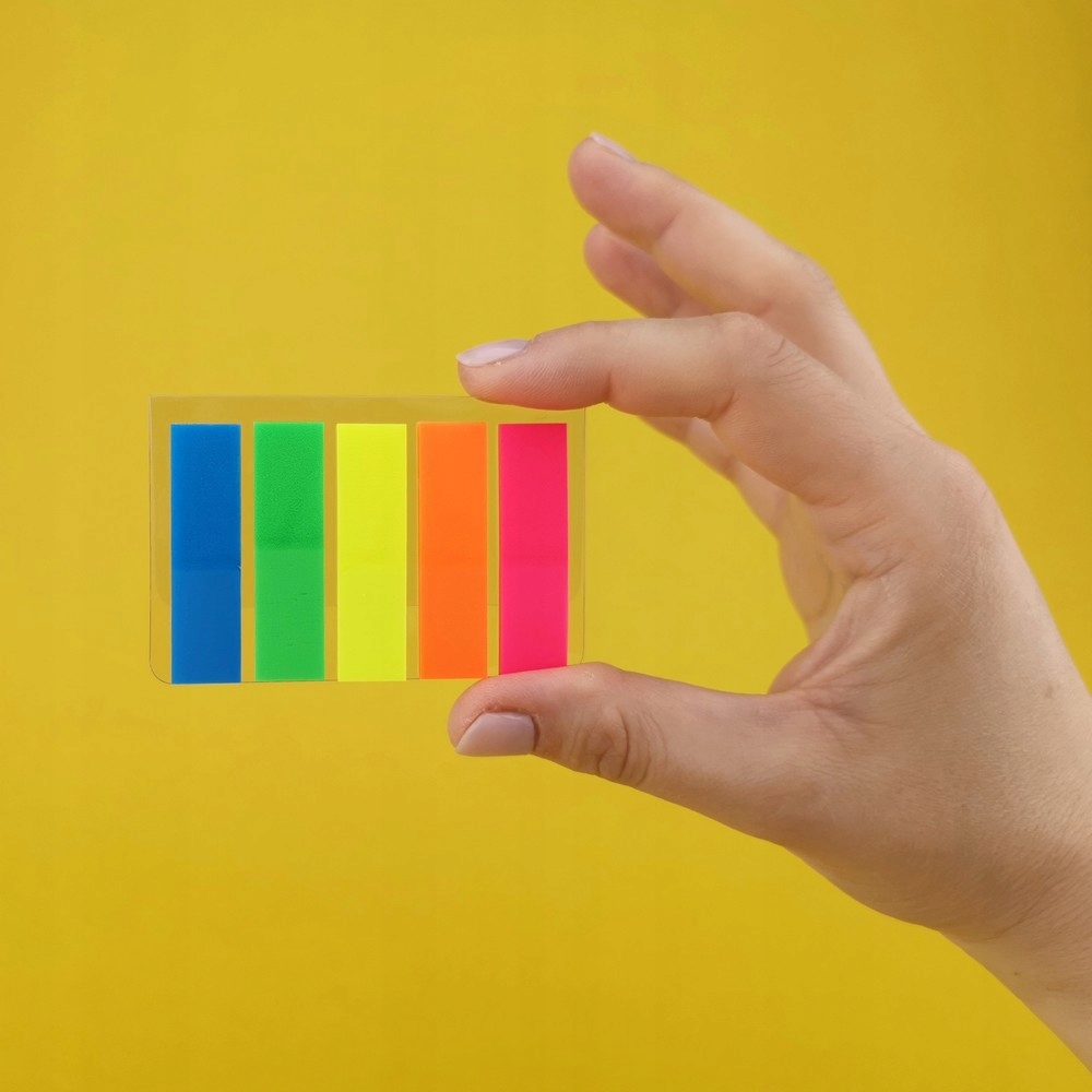 - У кожному наборі 5 неонових кольорів, по 25 вкладок у кожній, розмір вкладки 45 х 12 мм.