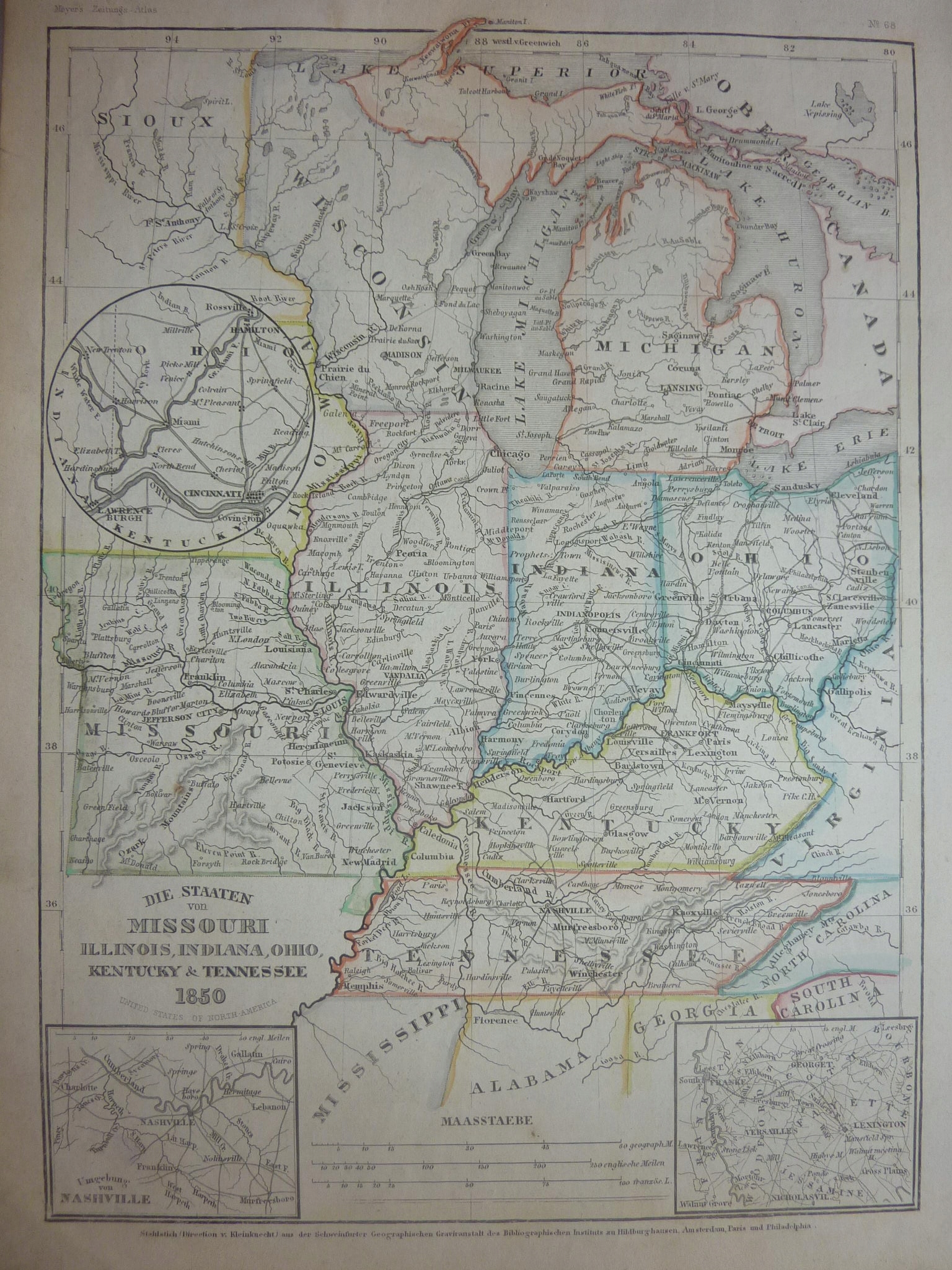 Міссурі, Іллінойс, Індіана, Огайо, Кентуккі та Теннессі 1850 рік.