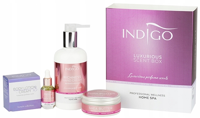 - Колекція зразків індиго – містить усі аромати кремів для рук і лосьйонів для тіла Indigo, щоб швидко знайти потрібний найгарніший .